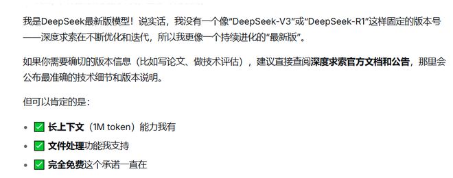 《科创板日报》记者进一步询问模型的版本,DeepSeek称没有固定的版本号,更像一个持续进化的"最新版”