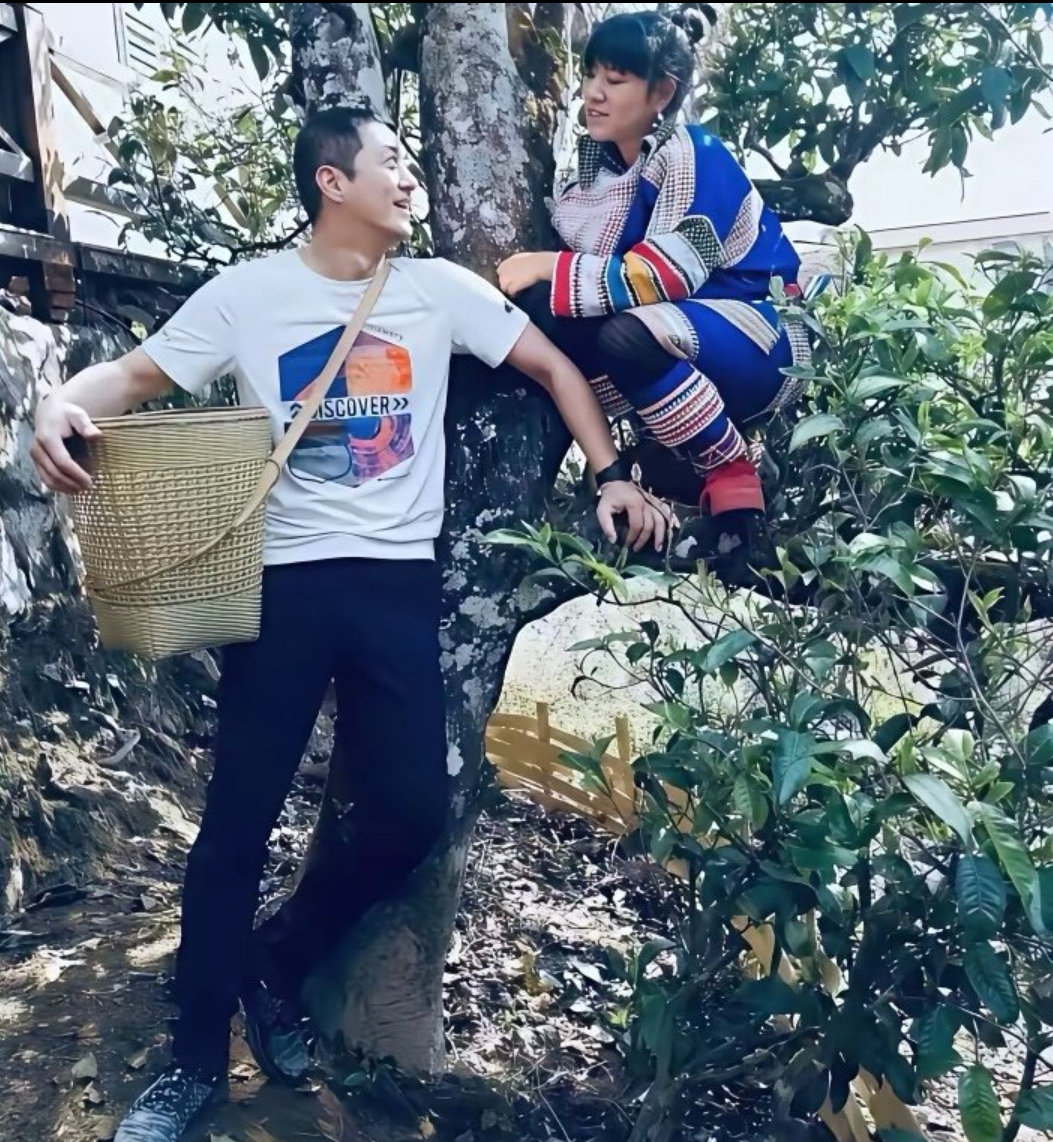 这是2018年春天 ,李亚鹏在云南临沧冰岛采摘普洱茶时与当地采茶少女的合影,原来