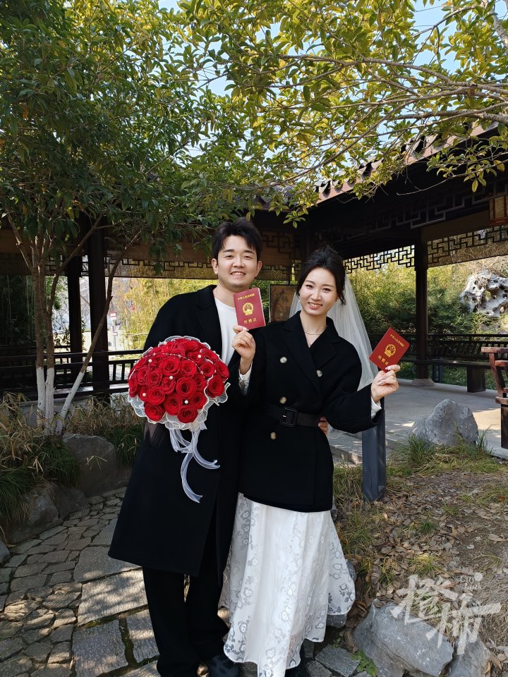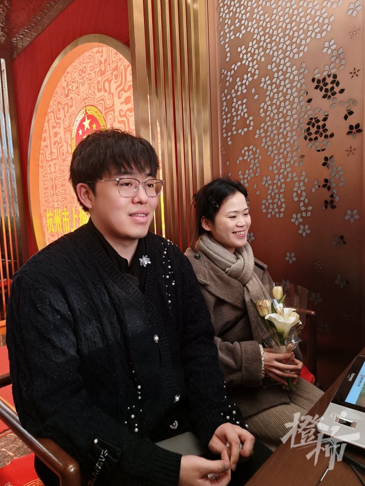 徐熙桐说,原本是想2月14日登记领证,但杭州各区婚姻登记处当天都约满了。吴广说,他连桐庐和建德都打听过了,都约满了。徐熙桐说,明年没春,特意赶在春节前登记结婚,选择今天是查过黄历的,黄历显示,宜:嫁娶、冠笄(jī)、纳采、出行、会亲友、上梁、安床、牧养、畋(tián)猎、祭祀、祈福、开光、修造、安门、盖屋、起基。网上评价杭州最美登记处在上城,今天就来了这里。