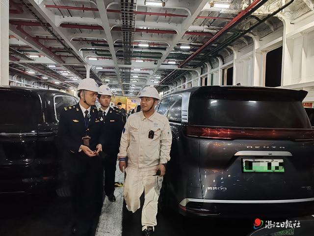 为切实保障新能源汽车海上运输安全,规范滚装客船载运作业流程,精准防范化解潜在风险隐患,徐闻海事处迅速行动,组织执法人员深入辖区港口,对执行载运任务的滚装客船开展专项安全检查。此次专项检查紧扣新能源汽车海上运输全流程关键环节,执法人员围绕车辆上船、积载、系固、隔离,以及航行期间动态监控、突发事件应急处置等核心内容开展全方位、精细化核查。