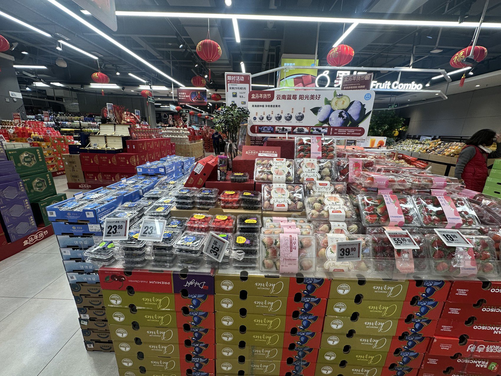 部分超市已经下架车厘子,卖蓝莓等水果。