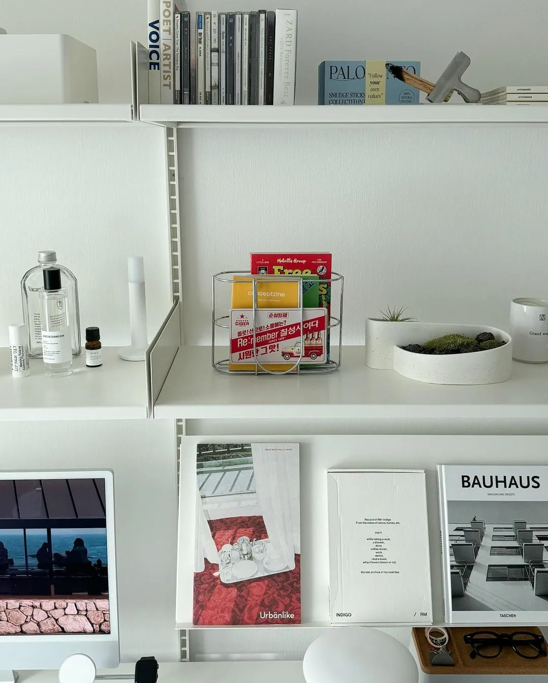 如果你也是个爱书人,那么书籍的收纳也很重要。一个好看的书架或者简单的书立,都能让书籍成为桌面上的一道风景。