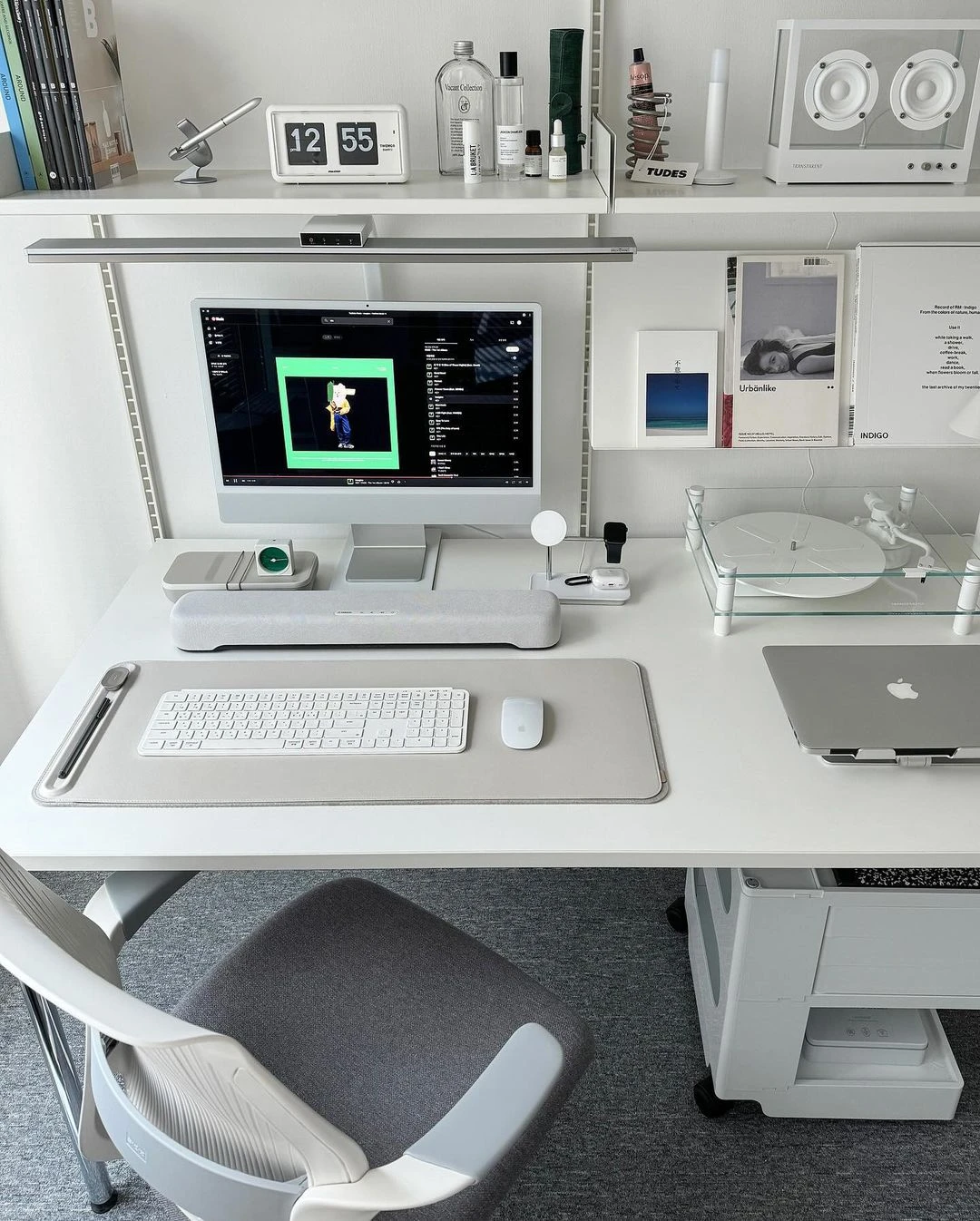 在桌上摆放一两盆绿植,它们不仅能够净化空气,还能在视觉上为你的桌搭增添一抹生机,让你在学习之余也能感受到一丝放松。