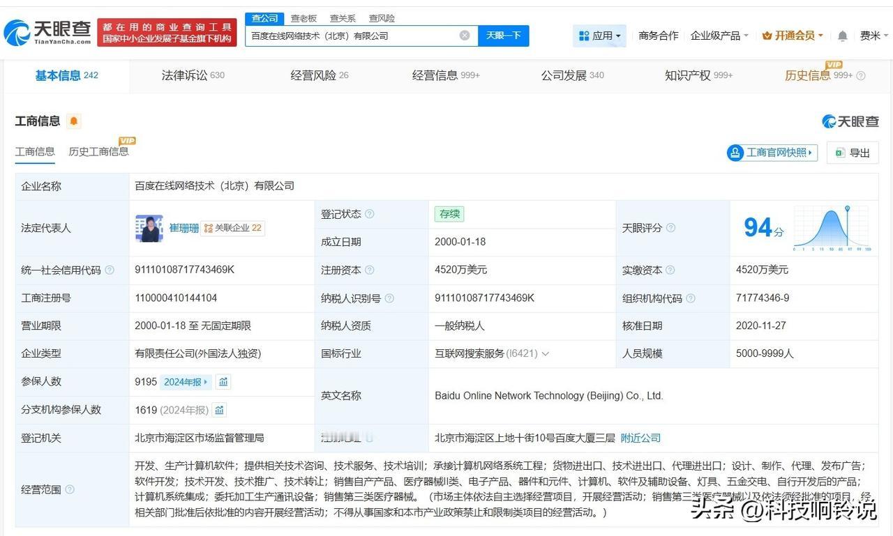 【百度登记文心助手作品著作权】 天眼查知识产权信息显示,近日,百度在线网络技术(北京)有限公司登记“文心助手”作品著作权,作品类别为类似摄制电影方法创作的作品。 百度在线网络技术(北京)有限公司成立于2000年1月,法定代表人为崔珊珊,注册资本4520万美元,经营范围包括开发、生产计算机软件,承接计算机网络系统工程,计算机系统集成等。股东信息显示,该公司由百度控股有限公司全资持股。 据媒体报道,去年10月,百度正式全面启用全新品牌“百度文心助手”,取代了此前的“百度AI搜索”。 天眼查信息: