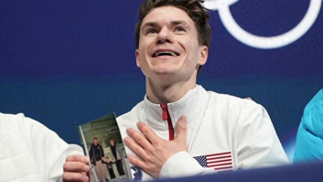 “我多希望他们坐在身边,共同见证这一刻,抬头看着分数牌。”等分席上,美国花滑选手马克西姆·瑙莫夫眼含热泪,亲吻手中泛黄的全家福,那是3岁时与父母在冰上的合影。经历难以想象的丧亲之痛后,24岁的他带着父母共同的心愿,圆梦冬奥会男子单人滑舞台。