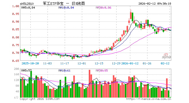 2月12日,军工ETF华宝(512810)开盘跌0.24%,报0.843元。军工ETF华宝(512810)重仓股方面,中国船舶开盘跌0.40%,光启技术跌0.17%,中国卫星跌1.16%,航天电子跌0.64%,航发动力跌0.43%,中航沈飞跌0.02%,中航光电跌0.06%,航天发展跌2.89%,菲利华涨0.00%,睿创微纳跌0.25%。