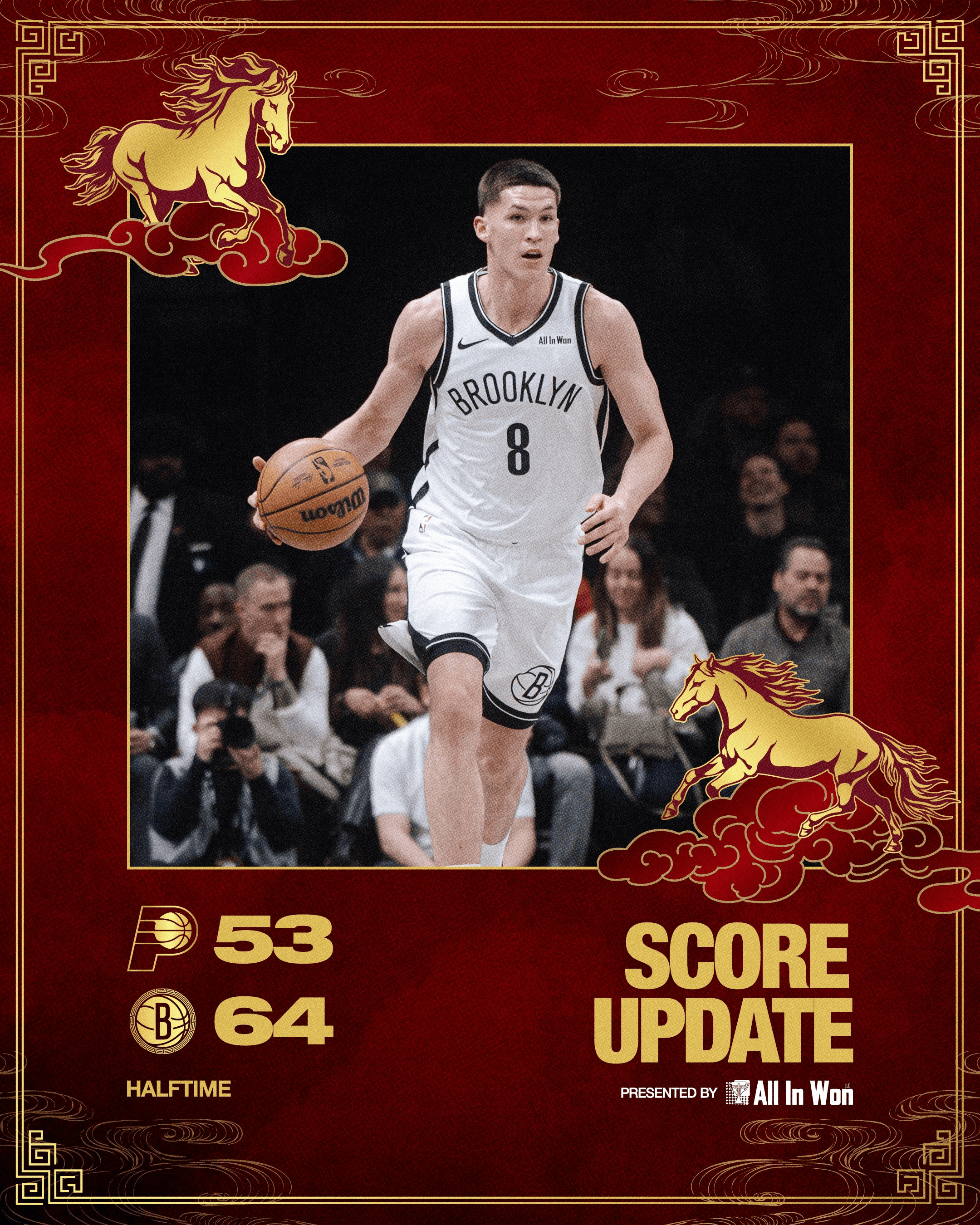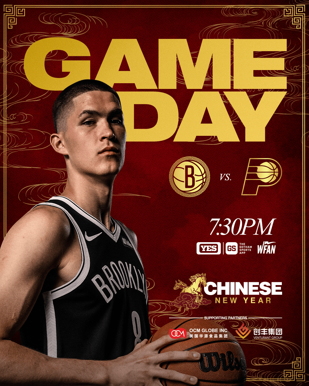 篮网官方赛前预告:“今晚我们在布鲁克林庆祝中国新年马年。”(We'recelebratingChineseNewYeartonightinBK.)