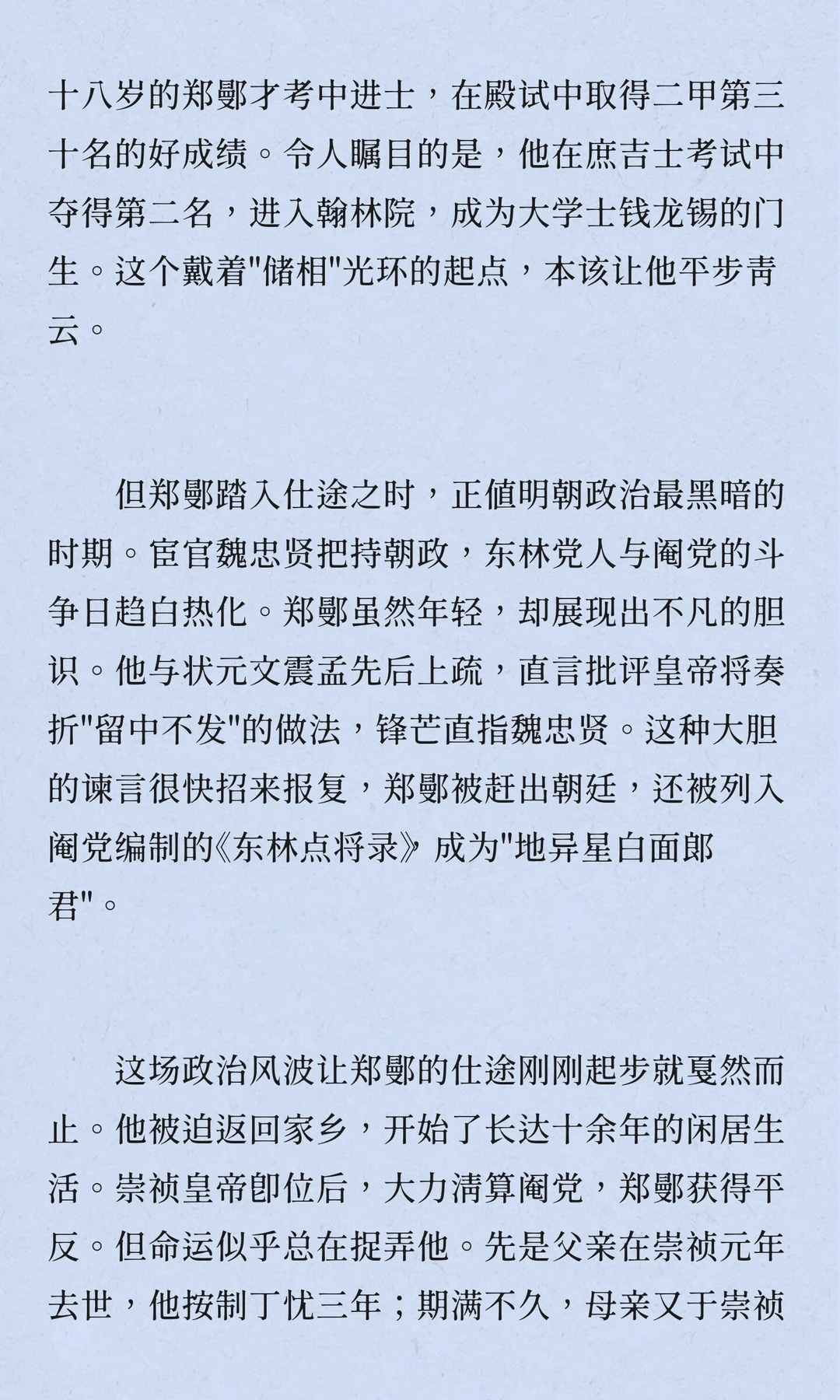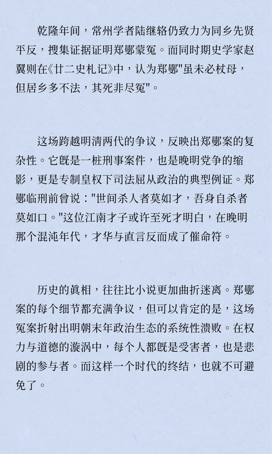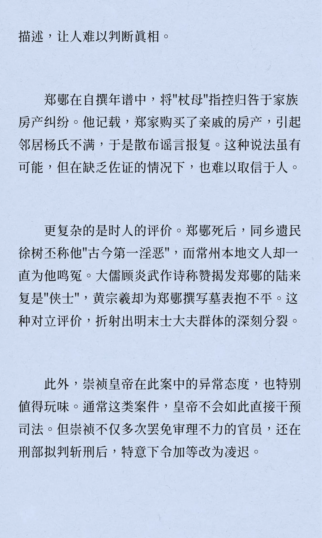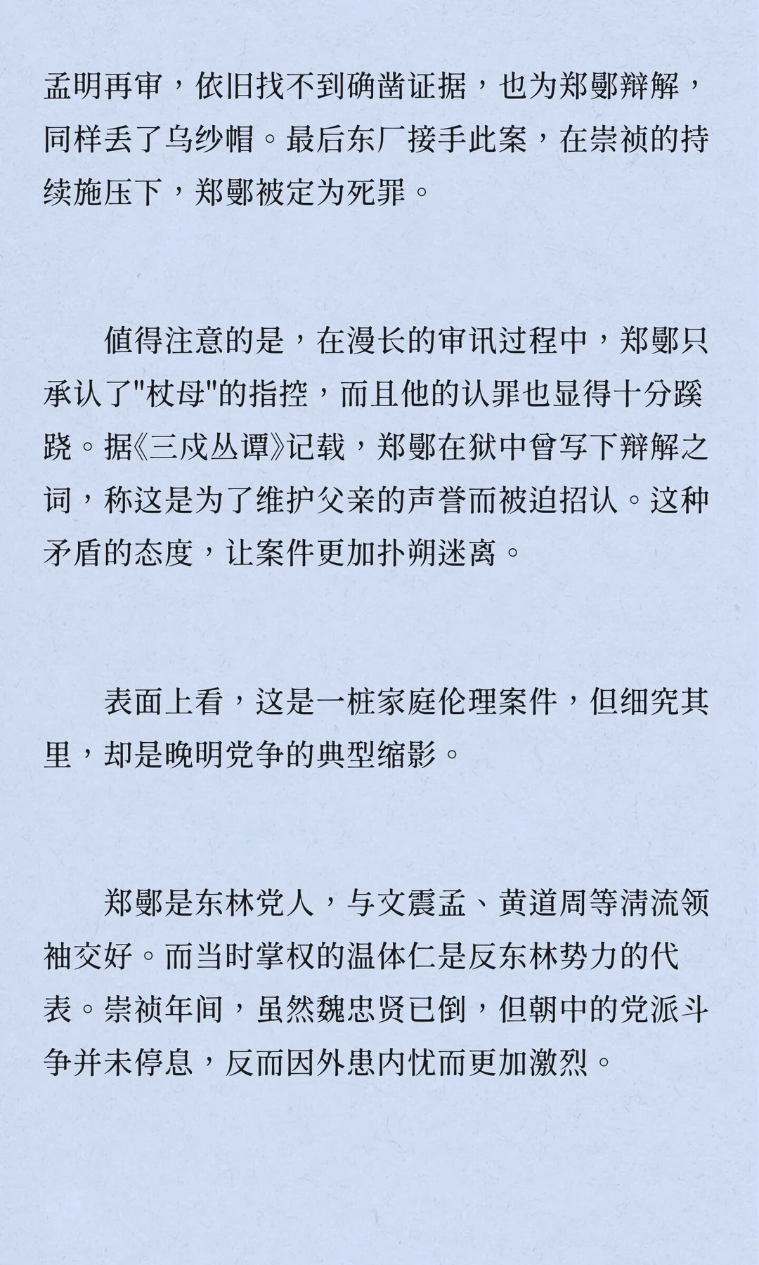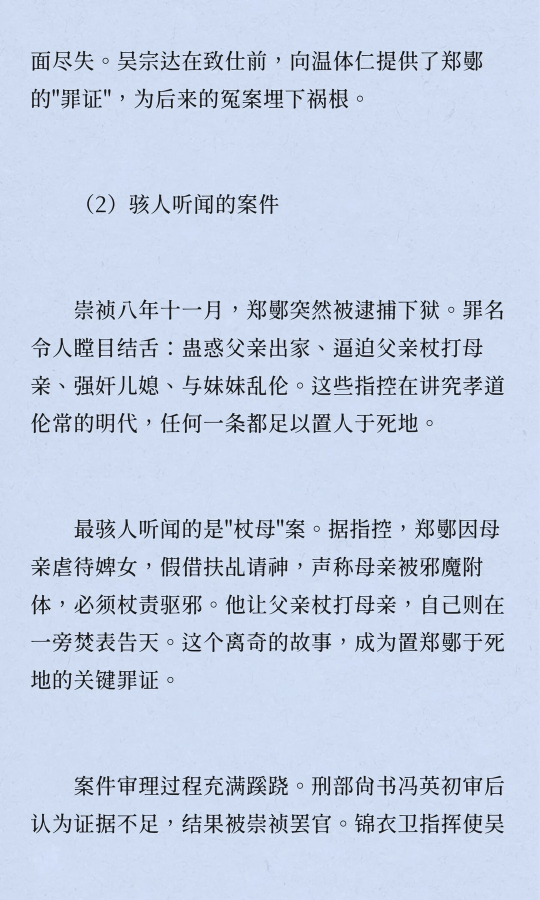 明朝崇祯十二年,常州名士郑鄤因"杖母逆伦"等罪名被凌迟处死,成为晚明党争与皇权斗争的牺牲品。案件复杂,牵涉宦官、首辅与东林党人,折射出明朝末期政治生态的溃败与道德沦丧。
