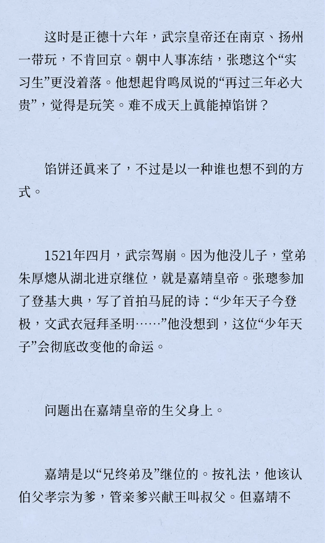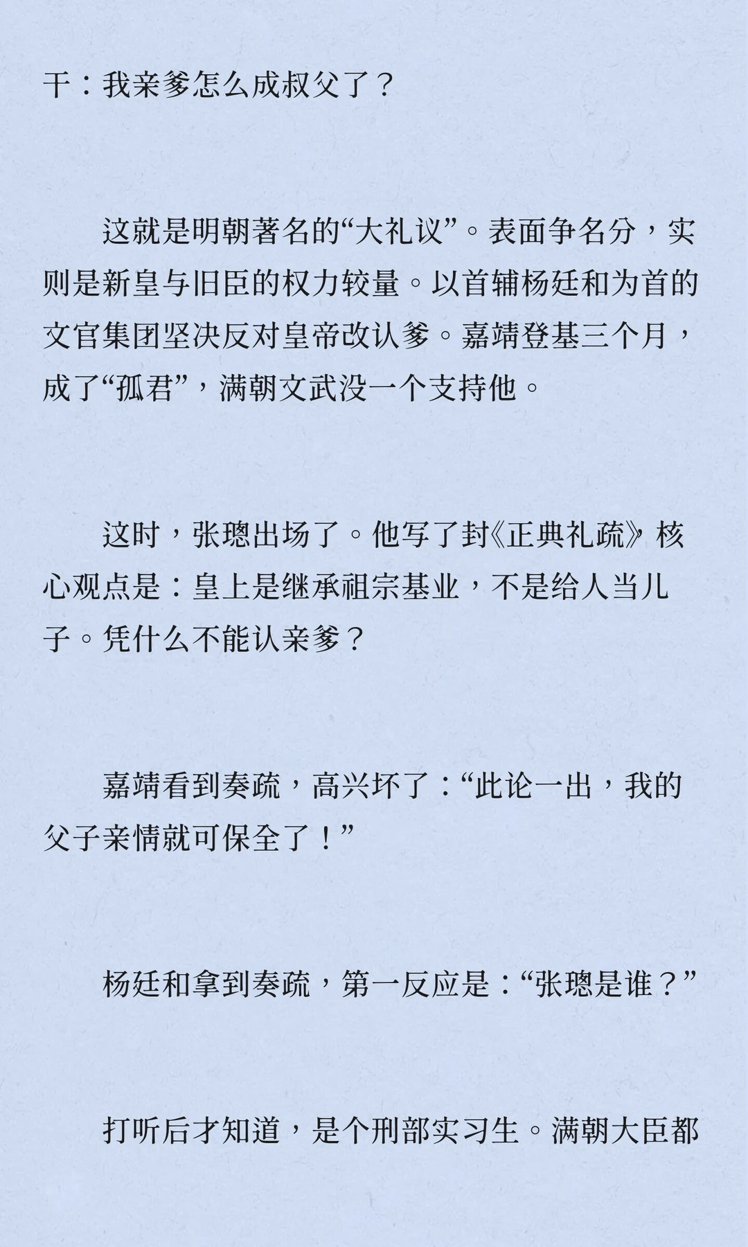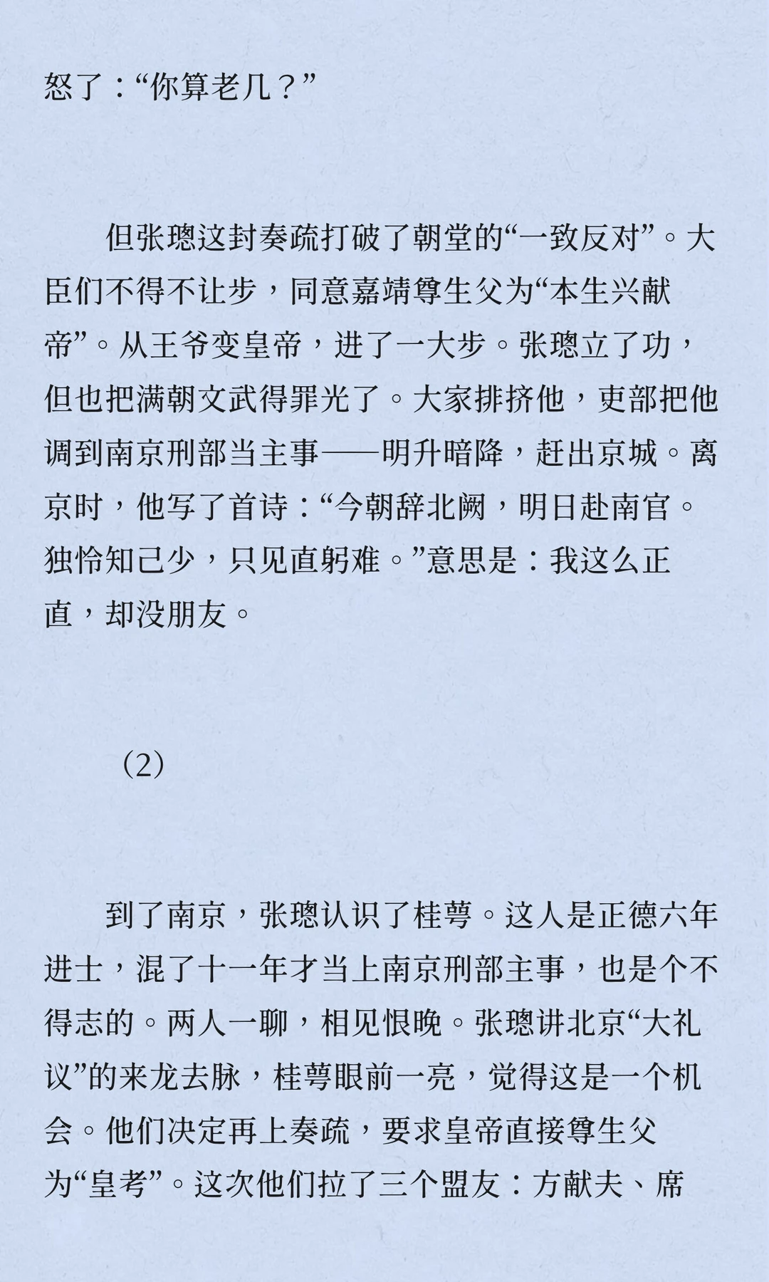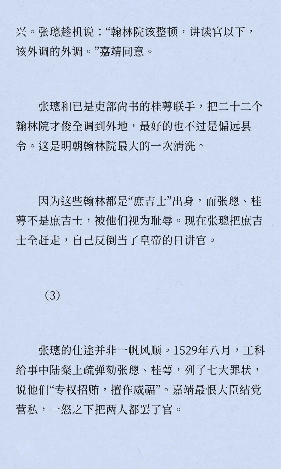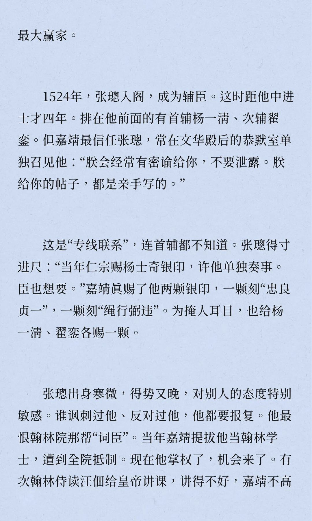 张璁,明朝,浙江永嘉人,四十七岁中进士,五十二岁入阁,六十岁当首辅,六十二岁病逝。他推动反腐,限制皇亲国戚特权,召回贪腐太监,但被士林鄙视,留下“奸臣”嫌疑。