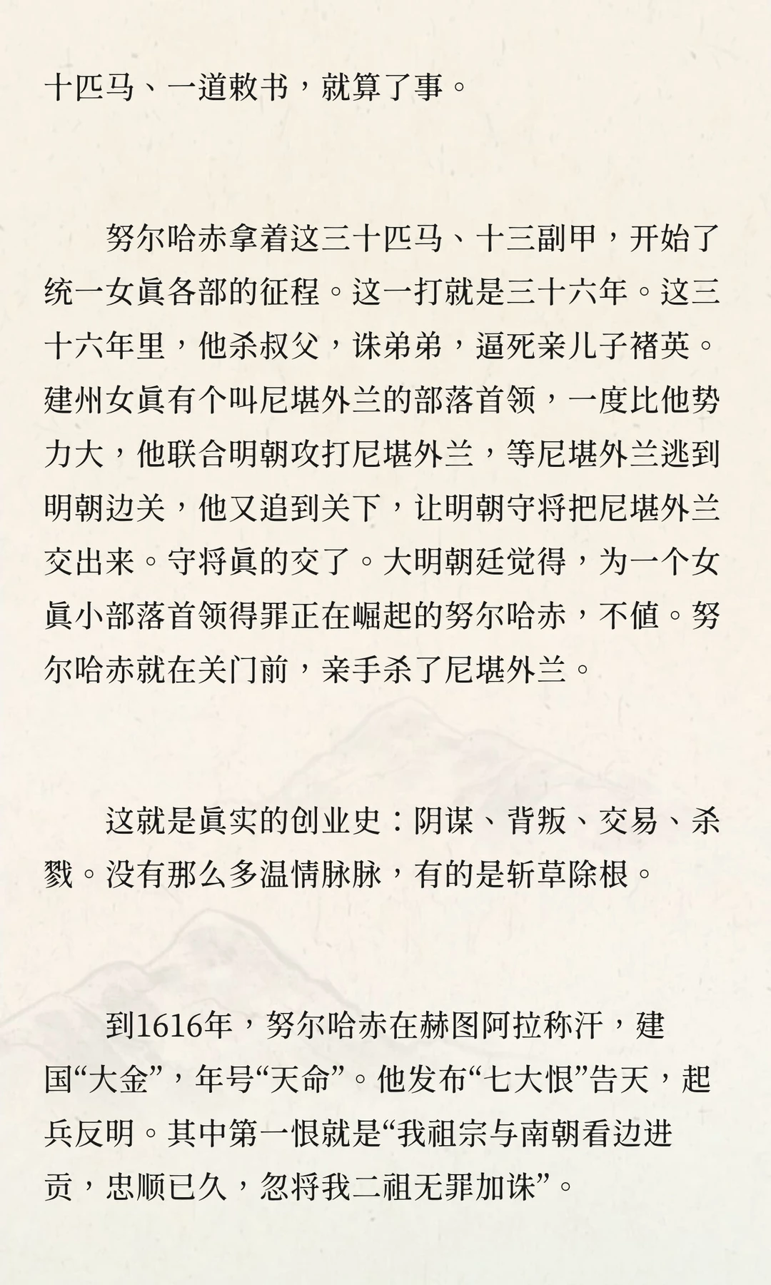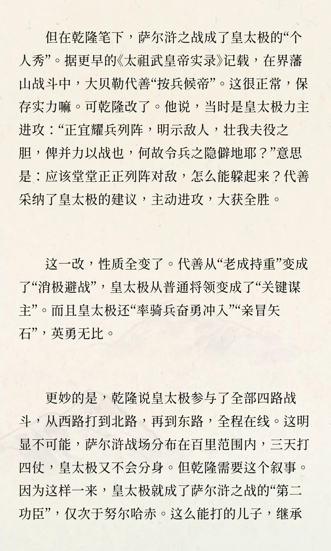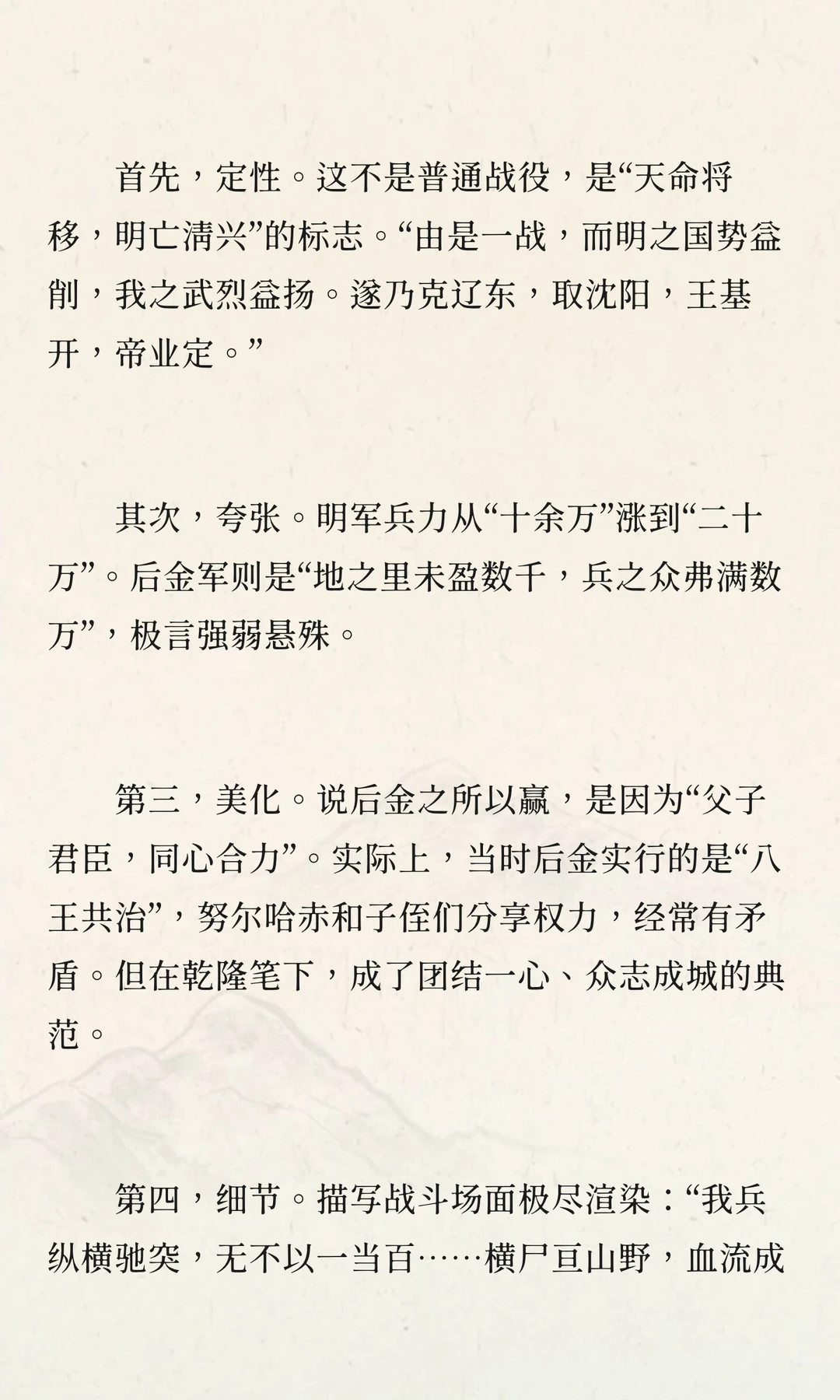 努尔哈赤通过萨尔浒之战统一女真,后被康熙塑造成“天命所归”的圣主。清朝通过编修《太祖高皇帝圣训》和《萨尔浒之战书事》等,将努尔哈赤神化,构建了“大清得天下最正”的合法性叙事。