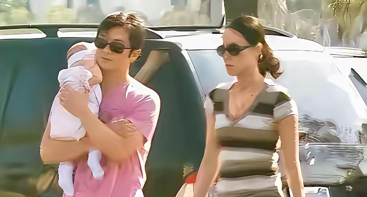 当年,李亚鹏抱着刚做完手术的李嫣与妻子王菲走在北京街头时的一幕