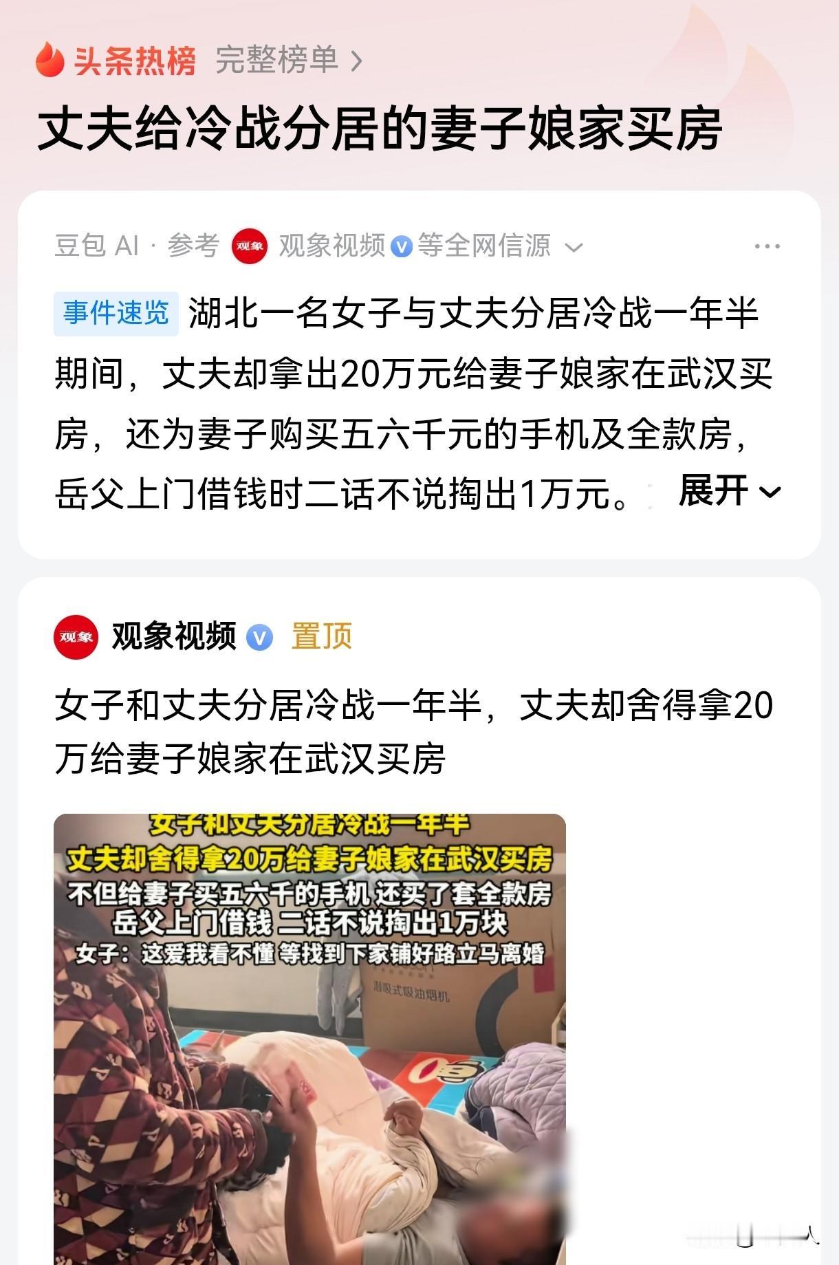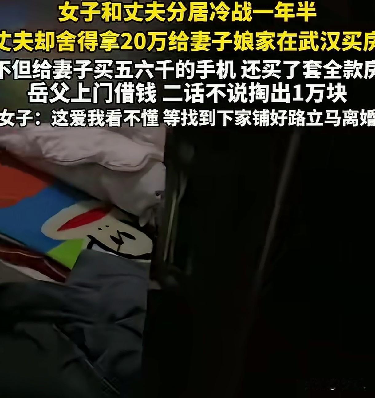 湖北,女子和丈夫分居冷战一年半,感情早就淡如水了,可没想到,丈夫非但没有对她冷若冰霜,反而出手阔绰,先是拿出20万,让妻子在娘家那边买套房子,接着又给妻子买5000、6000的新手机,就连岳父上门来借钱,他也是二话不说,直接掏出一万块,这份慷慨,让人刮目相看,可妻子的反应却让人意想不到。 女子和丈夫结婚多年,生儿育女,本以为会和丈夫把日子好好过下去,可两人性格迥异,经常为了一点小事就吵的不可开交。 孩子生病,一个指责对方没照顾好,一个埋怨对方不体谅自己的辛苦;家庭开支上,一个觉得要精打细算,一个认为该享受当下。 每次争吵,都让夫妻二人的感情越来越冷淡,一次激烈争吵后,女子一气之下收拾东西回了娘家,她满心委屈,只想离开这个让自己痛苦的地方。 丈夫也没有挽留,两人就这样开始了长达一年半的冷战分居,女子本以为两人的感情早就没了,可没想到丈夫却追到了女子娘家,拿出20万给妻子在武汉买房,还给妻子买了全款房。 得知妻子的手机坏了,男子立马给妻子买了5000、6000的手机,连岳父遇到难处,开口问他要钱,他也二话没说拿了1万给岳父。 可女子看着眼前憔悴又真诚的丈夫,却没有半点温情,她说:这爱自己看不懂,等找到下家铺好路立马离婚。 这夫妻两人的行为都让人看不懂,夫妻冷战,本就意味着感情出现了裂痕,需要双方共同努力去修补。 丈夫想要用金钱来弥补妻子,不知道是真心悔过,还是想用物质来稳住妻子,让她不要急着离开。 而妻子对于丈夫的金钱攻势,非但没有感动,反而更加坚定了离婚的念头,这又是为什么呢? 或许,在她心里,金钱买不来真正的幸福和温暖,她渴望的是丈夫的关心和理解,是两个人能够心平气和地坐下来,好好聊聊,把心里的疙瘩解开。 《民法典》第1043条规定:夫妻应当互相忠实,互相尊重,互相关爱。 夫妻之间应当相互尊重,相互理解,共同面对生活中的风风雨雨,而不是像这对夫妻这样,用冷战和分居来解决问题,用金钱来弥补感情的裂痕。家风不正,家庭就难以和睦,更别提幸福了。 有人说:夫妻一旦冷战分居,在没有孩子的情况下,还是各谋出路吧,毕竟人生苦短,何必勉强自己在一个不幸福的婚姻里挣扎呢?但如果有孩子,还是要努力维护这个家,给孩子一个完整的成长环境。 也有人说:夫妻还是原配的好,二婚就是两个人搭伙过日子,很难再找到那种真心相爱的感觉了。 也有人劝男子:恋爱脑要不得,对自己好点吧,大哥! 还有网友分享了自己的经历,说自己的老公在人前对自己很好,可独处时却总是言语挑衅,欺负自己,虽然没动过手,但那种精神上的折磨,也是让人难以忍受的。 婚姻这事,如人饮水,冷暖自知,每个人对婚姻的期待和需求都不一样,有的人看重物质,有的人看重精神。 但无论如何,夫妻之间都应该多沟通,多理解,多包容,用真心去对待彼此,这样才能让婚姻长久地走下去。 别等到感情真的破裂了,才想着用金钱去弥补,那时候,可能就已经晚了。