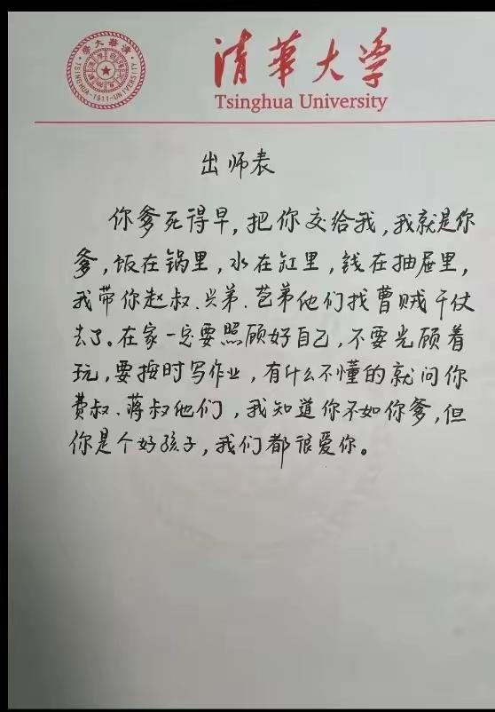 今天读到一篇网友版出师表: “你爹死的早,今后我就是你爹,现在我要找曹贼干仗去了,饭在锅里,水在缸里,钱在抽屉里,你在家好好写作业,乖。” 读完之后,我忽然鼻子一酸:多么朴实的白话,却道出了老诸葛的无奈。 不过,能把托孤这样的大事用白话文说出来,通俗易懂,简单明了,真是高手在民间啊。 唉,丞相当年要是这样写,我上学时肯定能背下来,也就不用挨老师的揍了。