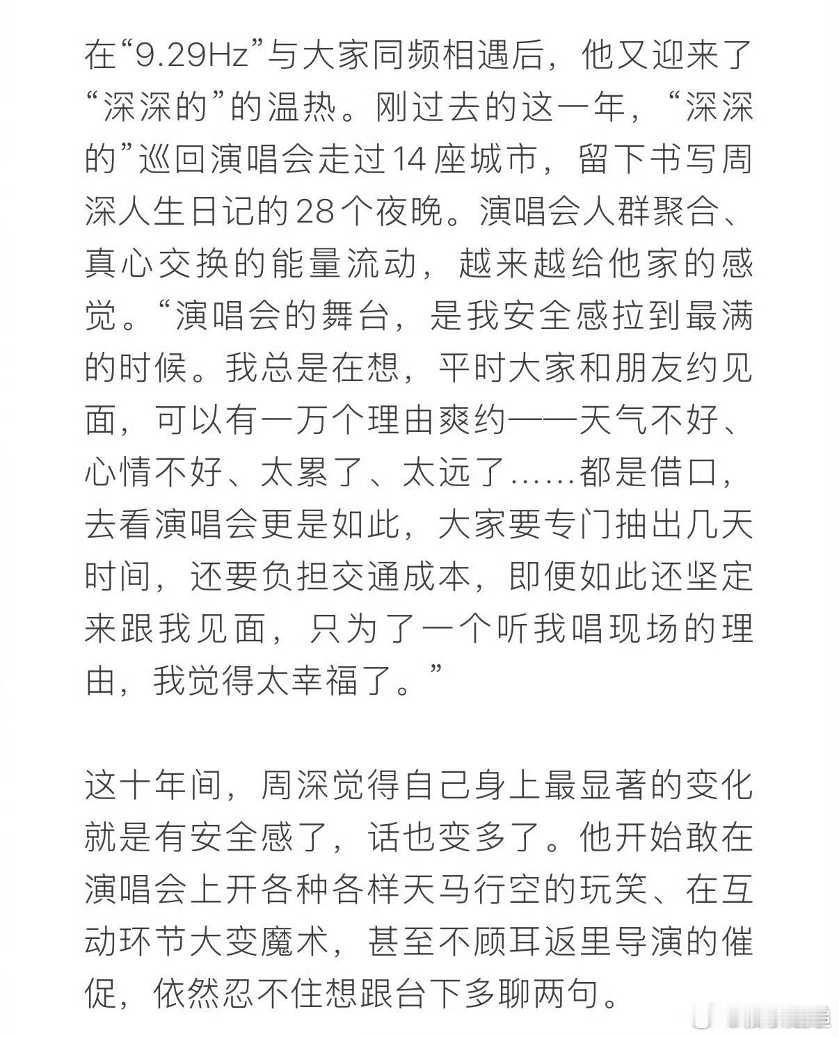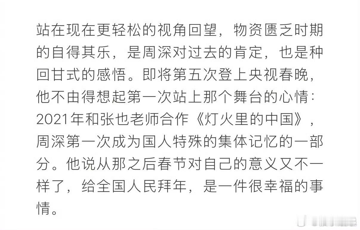 周深回应五登春晚周深说自己最大的变化是有安全感了周深聊起五登春晚,他说这十年最大的变化是“有安全感了,话也变多了”。从第一次上台紧张到不行,到现在能笑着和观众唠嗑。当年那个不敢开口的少年,终于被满满的掌声治愈了。五登春晚,每一步都是成长,真好!