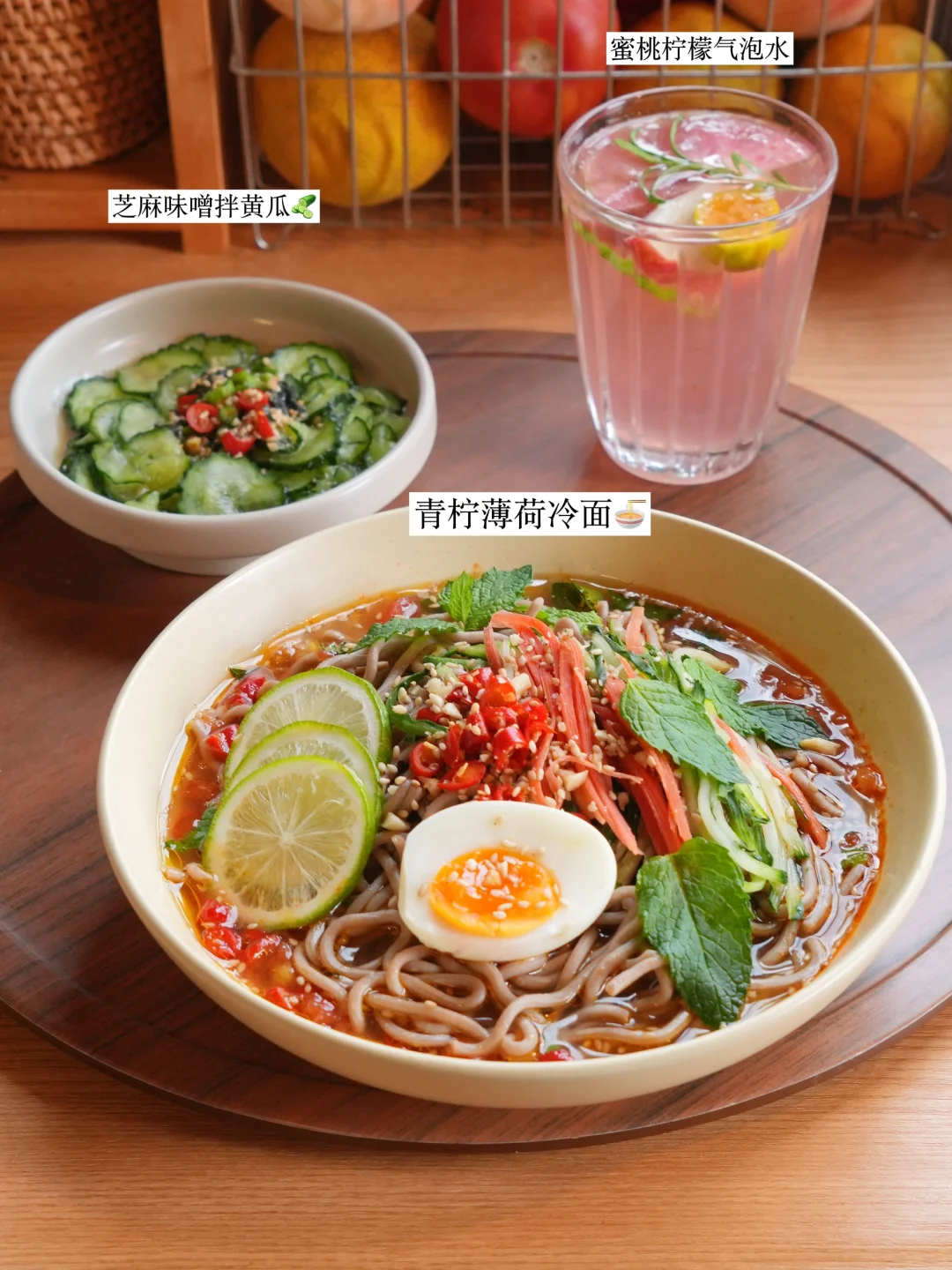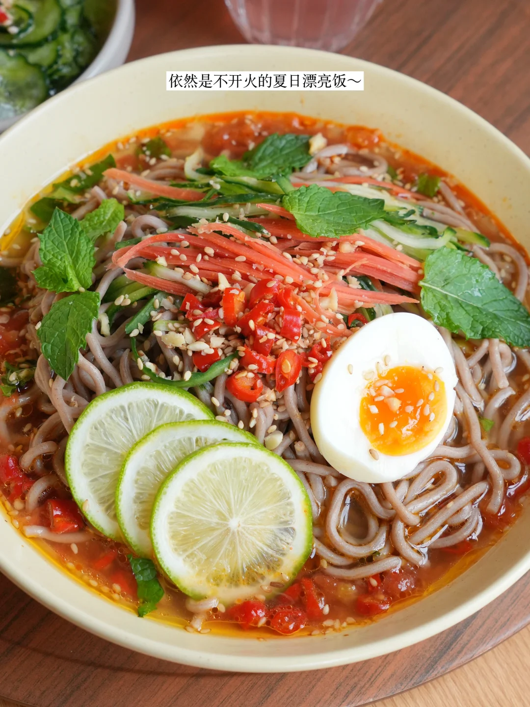 今日不开火一人食分享 ▪️青柠薄荷冷面🍜 ▪️芝麻味噌拌黄瓜🥒 ▪️水蜜桃柠檬气泡水🍑 👩🍳青柠薄荷冷面🍜 番茄酸汤打底,再有木姜子油、青柠、薄荷来增添丰富浓郁的香气,就会让人联想到贵州、云南、东南亚的异域风味,赞! 面条如果换成更能挂味的挂面、米线、粉之类的,感觉口感会更好~大家试试! 夏天就想吃一些清凉🆒的食物,常常会用到冰水,碧然德小立方净饮机有快速制冷系统,20分钟就能降温至5度,想喝冰水就太方便啦!