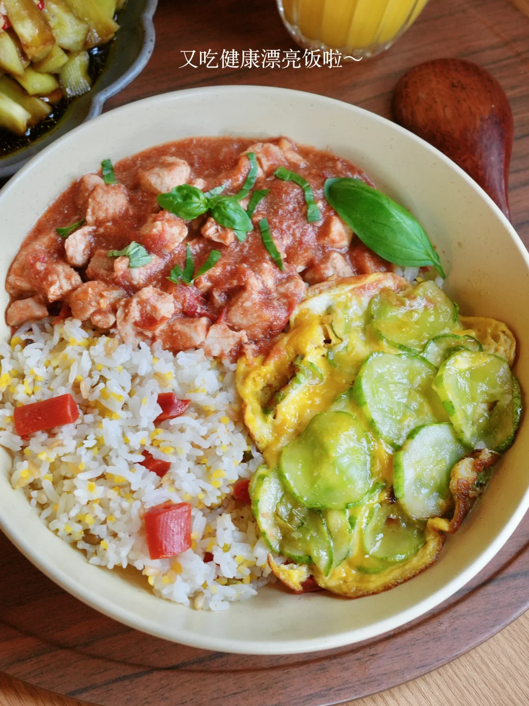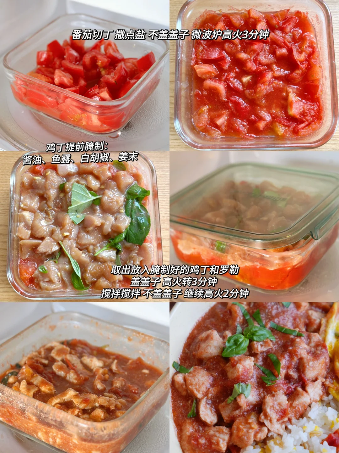 今日份健康一人食分享: ▪️微波炉番茄罗勒鸡肉 ▪️微波炉凉拌酸辣茄子 ▪️胡萝卜玉米饭/黄瓜滑蛋 👩🍳番茄罗勒鸡肉 番茄和罗勒,在地里很适合一起种植,在餐桌上也很适合搭配在一起!特别鲜香清爽,风味别致~ 👩🍳凉拌酸辣茄子 用微波炉蒸茄子,更快营养保留更多。搭配清爽鲜辣的酱汁,下饭!