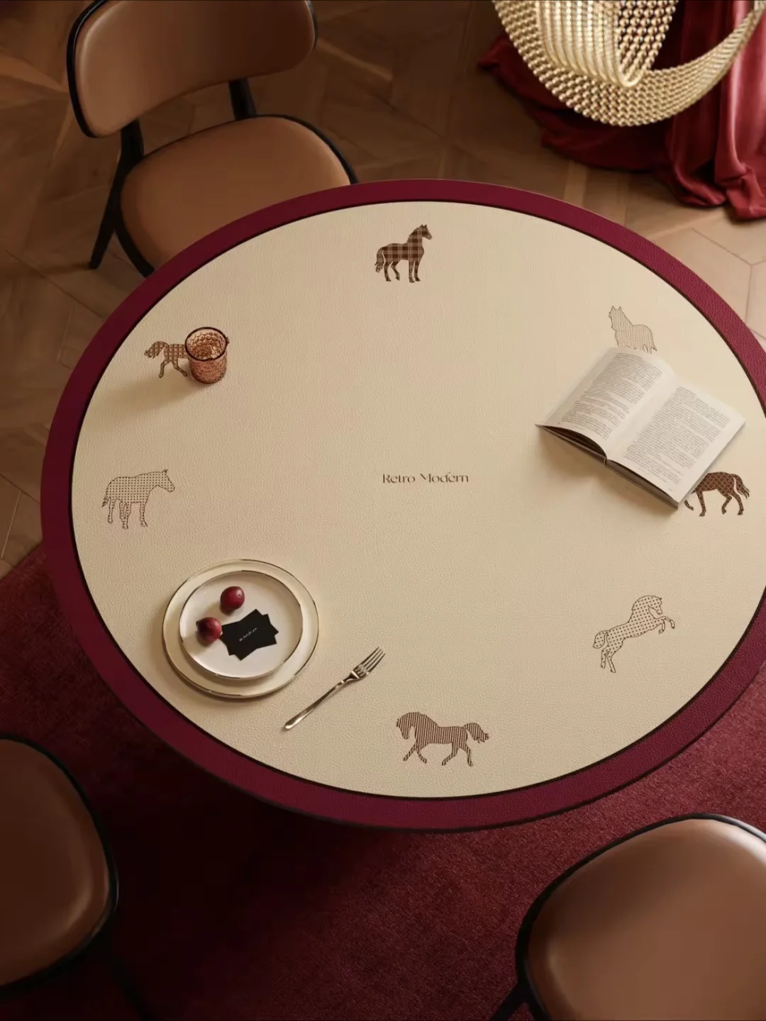 一张皮革桌垫就能让餐桌年味儿满满 这次没有选择传统生肖图案 而是以简约线条勾勒出不羁的骏马形态 配色选用勃艮第红与浅卡其 两者搭配柔和而沉稳 为餐桌增添一抹现代感 烘托出温馨雅致的节日气氛 适合新年餐桌布置 日常使用也时髦有格调 -