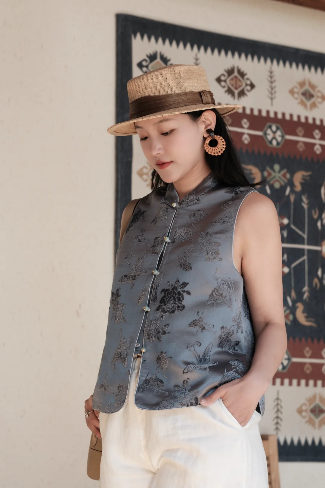 但是有的衣服可以从17穿到71,比如这件新中式漳缎马甲,搭配内搭和单穿是不一样的感觉,开春我们穿着它出去郊游可好~