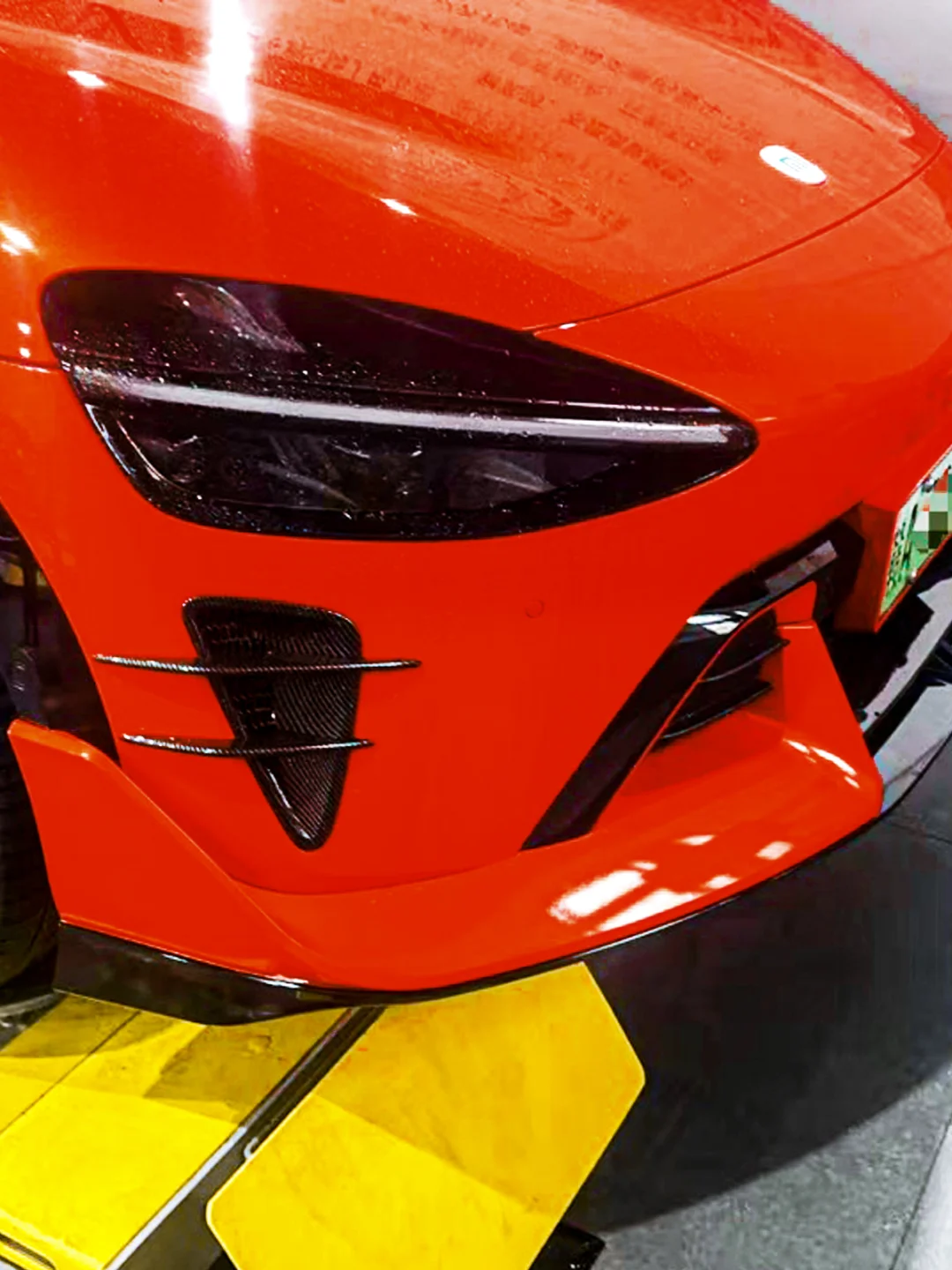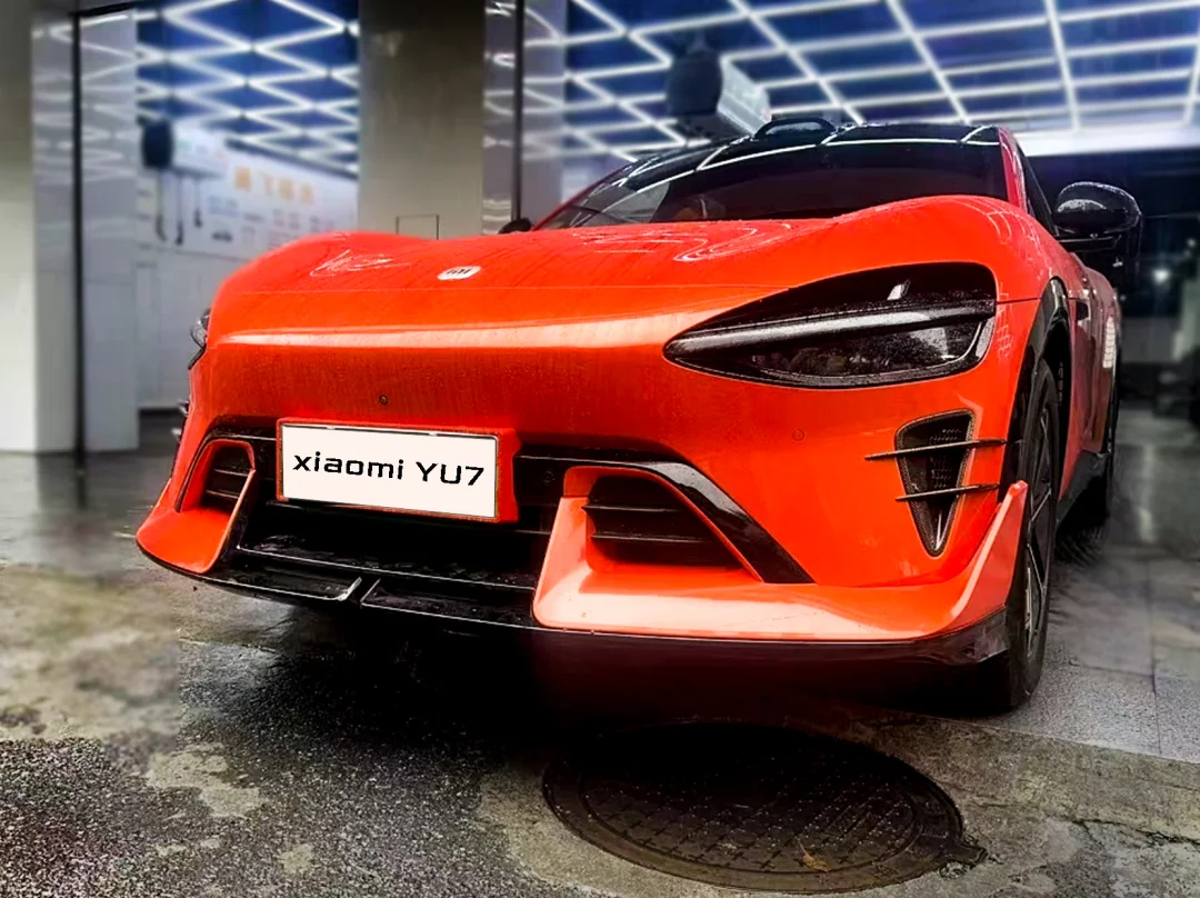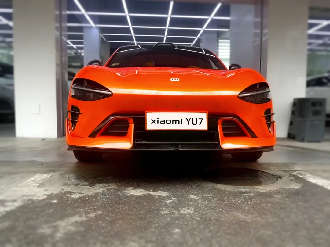 稀有的熔岩橙江西小米Yu7车主装的这套【驭风】前铲 要求:当中黑,两头是原车颜色 施工时要先喷一层亮黑,等亮黑漆面好后,才能喷原车的熔岩橙,而这个颜色又很难调,所以耗费的时间会长 前铲安装方面很简单,只需要胶粘+螺丝固定 最终还是赶在过年前装好拿车了[派对R]