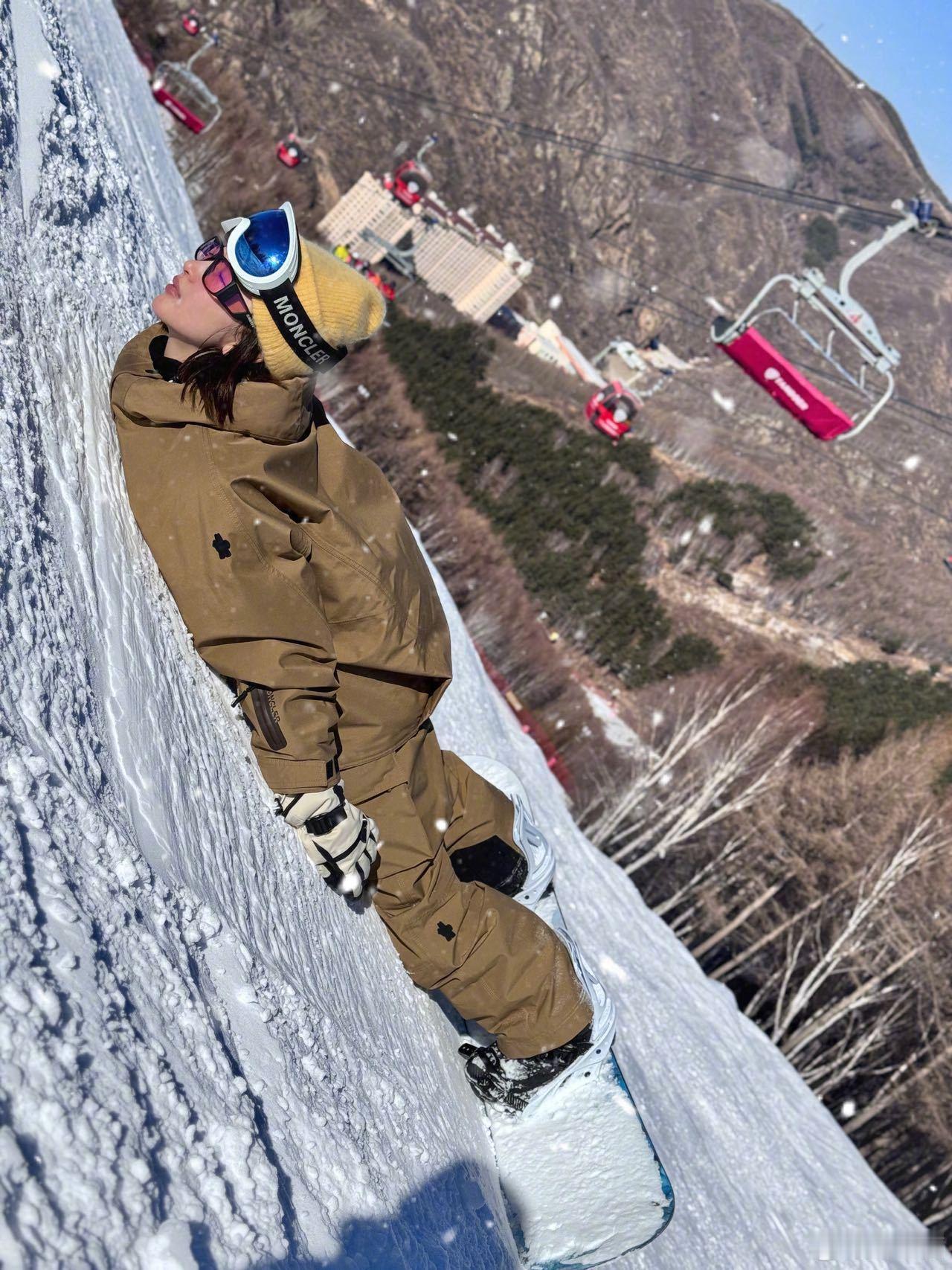 周冬雨 给大家拜个早年周冬雨滑雪用脸发力 周冬雨就这样滑上单板了!在坡道驰骋真的