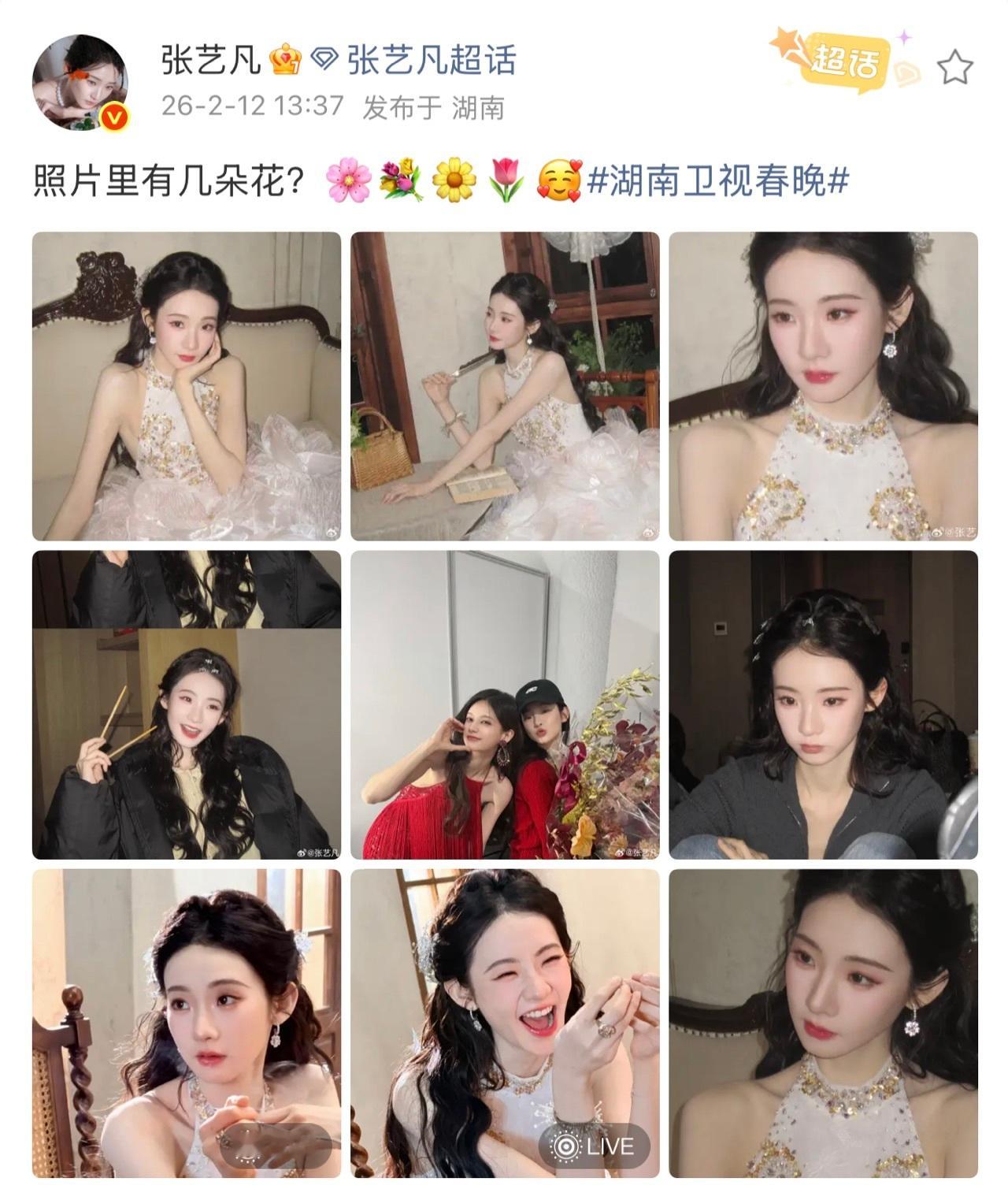 张艺凡问照片里有几朵花 悄悄告诉,照片里除了裙子上的碎花,还看到了两位娇俏可爱的小姑娘!舞台工作刚结束依旧美成春日画卷,这状态太能打了