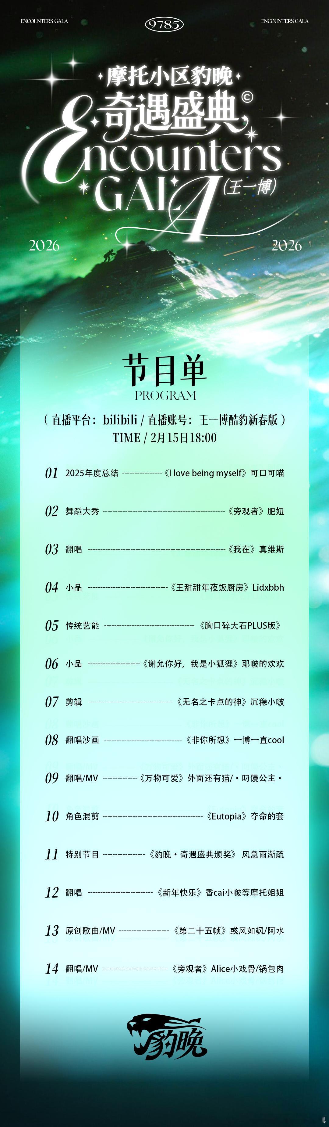 💚💚💚💚💚💚💚💚💚💚💚以下【摩托小区豹晚·奇遇盛典—节目单放送】期待2月15日晚18:00与大家在b站准点相见!