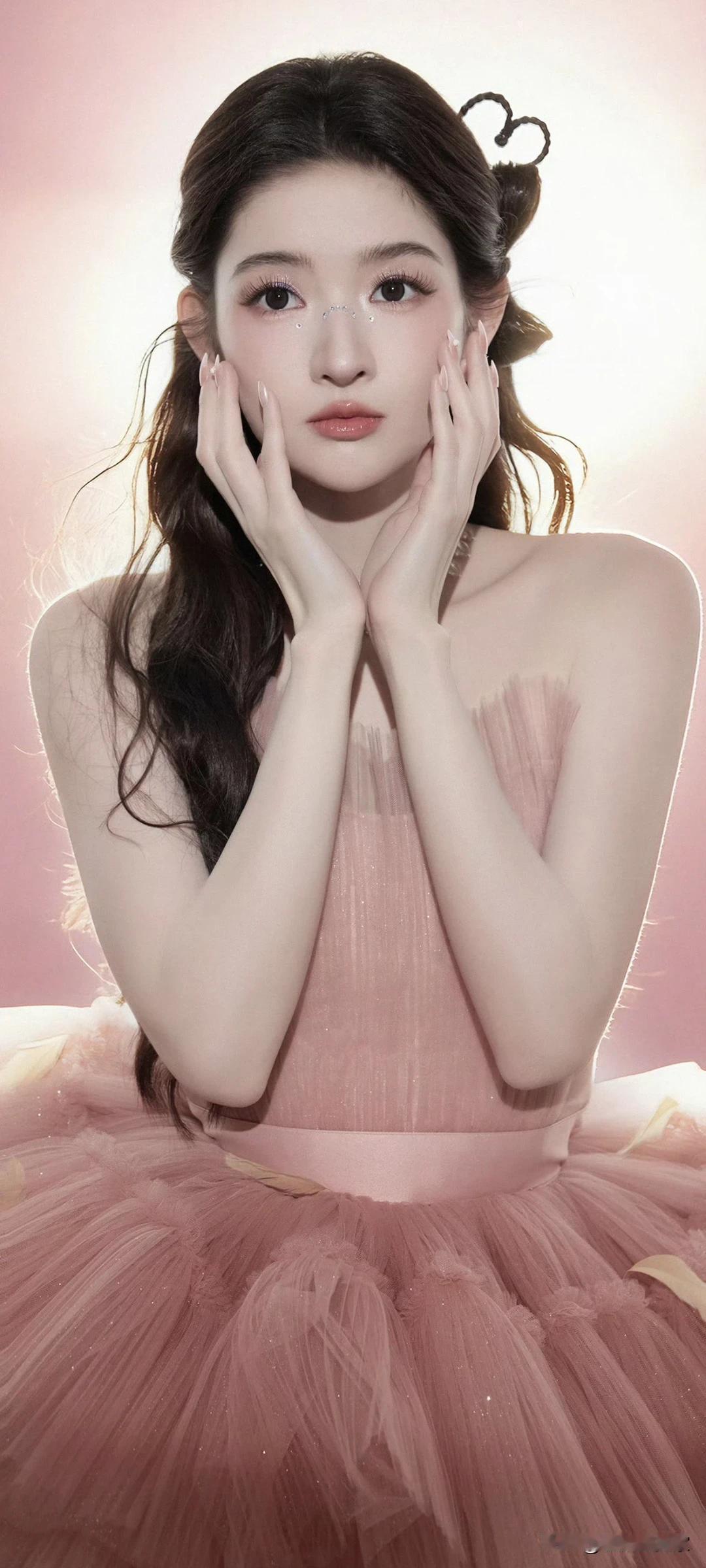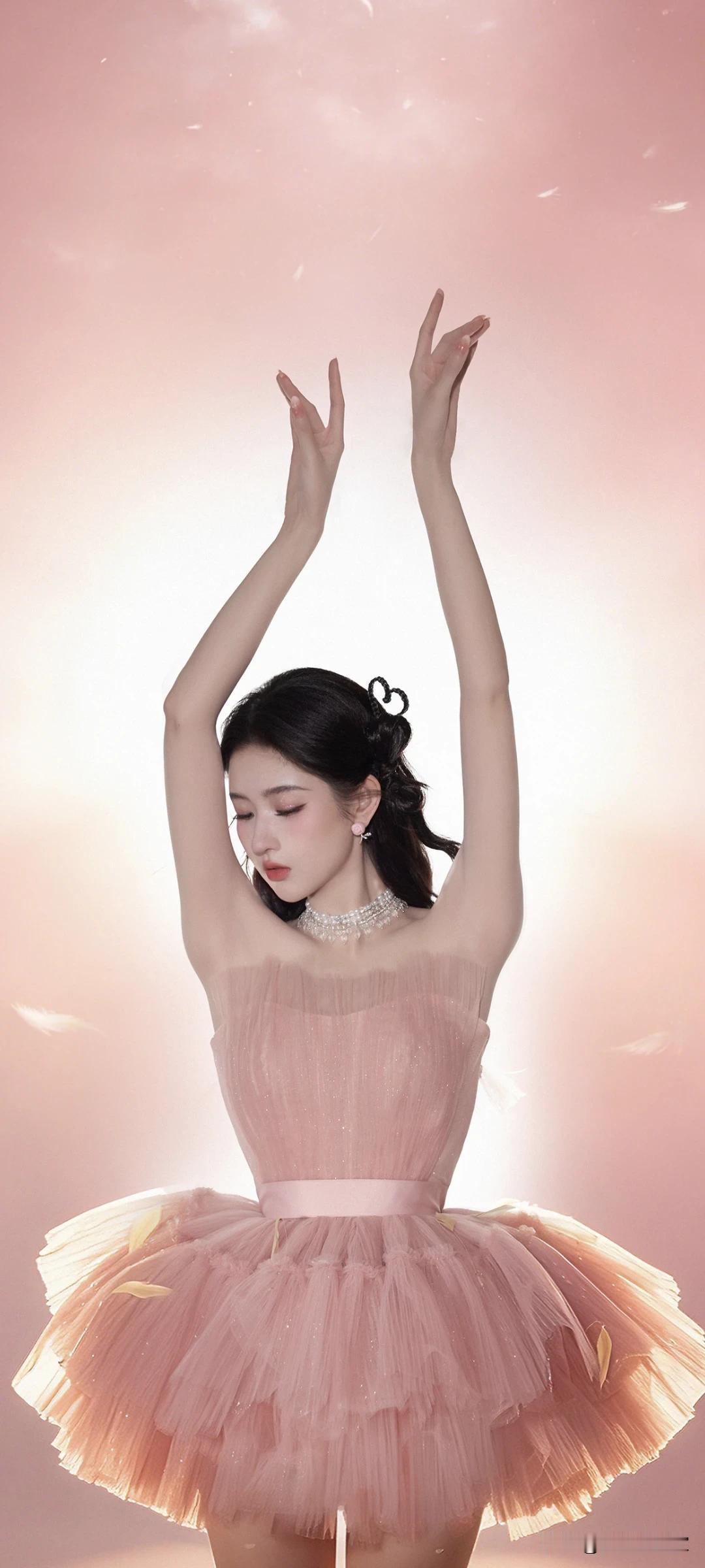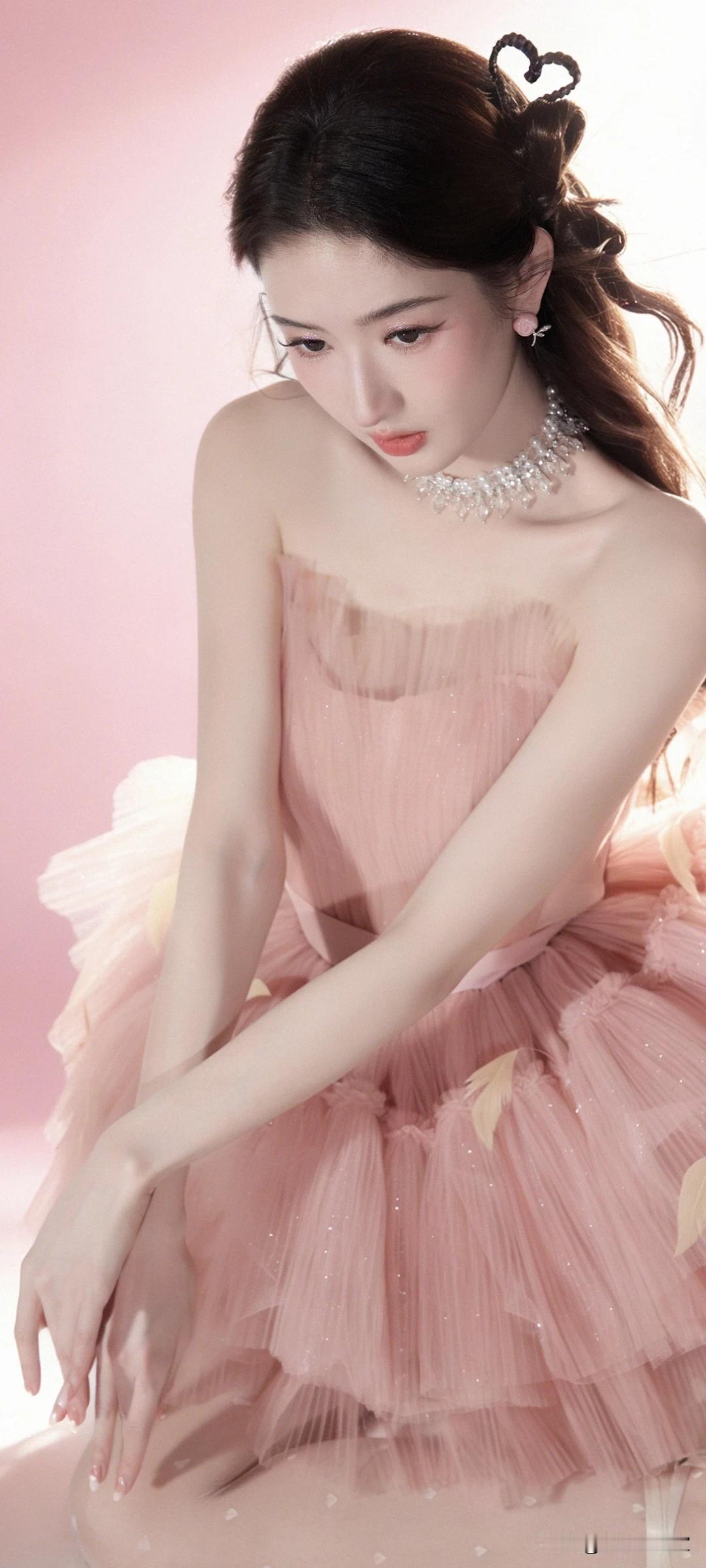 王玉雯写真壁纸~藕粉纱裙+蝴蝶结高跟鞋,是从童话里走出来的仙女吧!