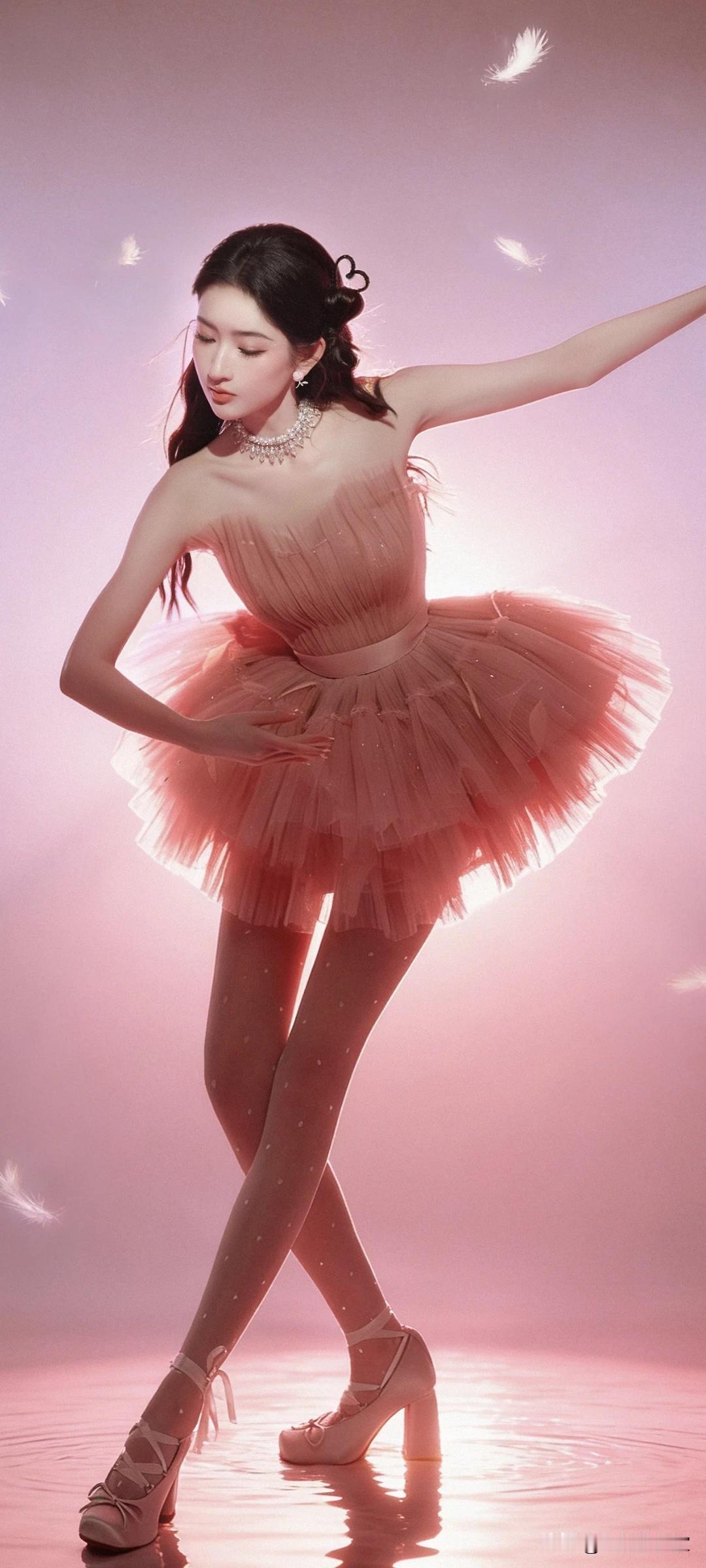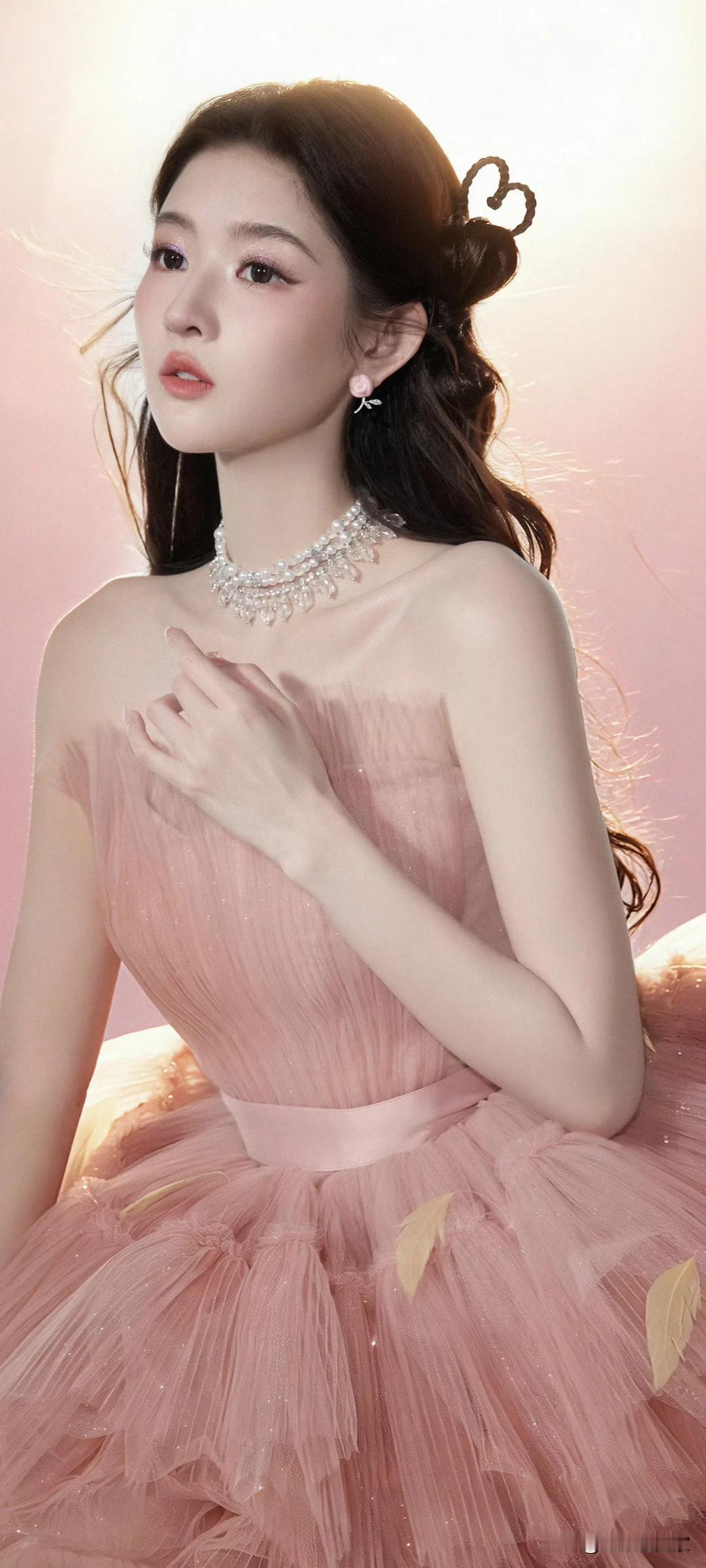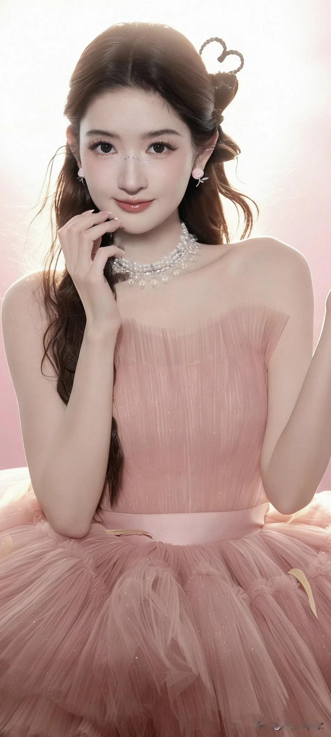 王玉雯写真壁纸~藕粉纱裙+蝴蝶结高跟鞋,是从童话里走出来的仙女吧!
