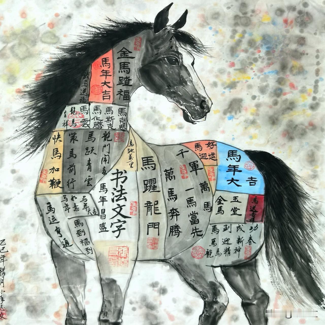 画匹汉马:好话说尽了,中二条也行。 国画 马年 新年画马 书法 汉字