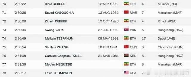 这主要是因为今年1月18日,张水华在重庆马拉松跑出2小时30分54秒,这一成绩已被世界田联正式认定为她的个人最好成绩。而去年在常州跑出的2小时30分38秒,则依然没有被世界田联认可。这是什么水平?今年全球女子马拉松所有成绩里面可以排在第75位!