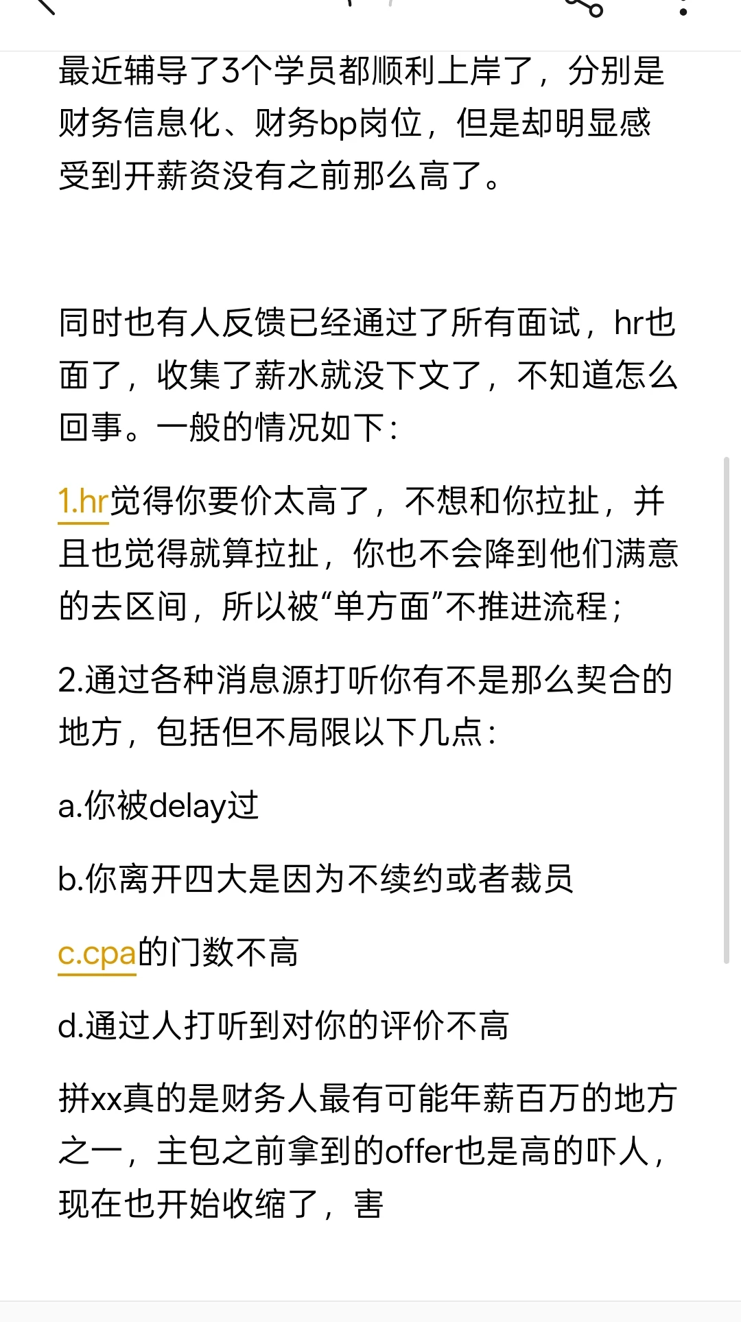 最近辅导了3个学员都顺利上岸了,分别是财务信息化、财务bp岗位,但是却明显感受到开薪资没有之前那么高了。