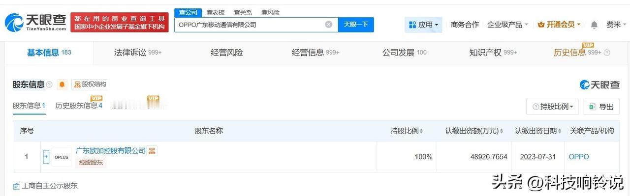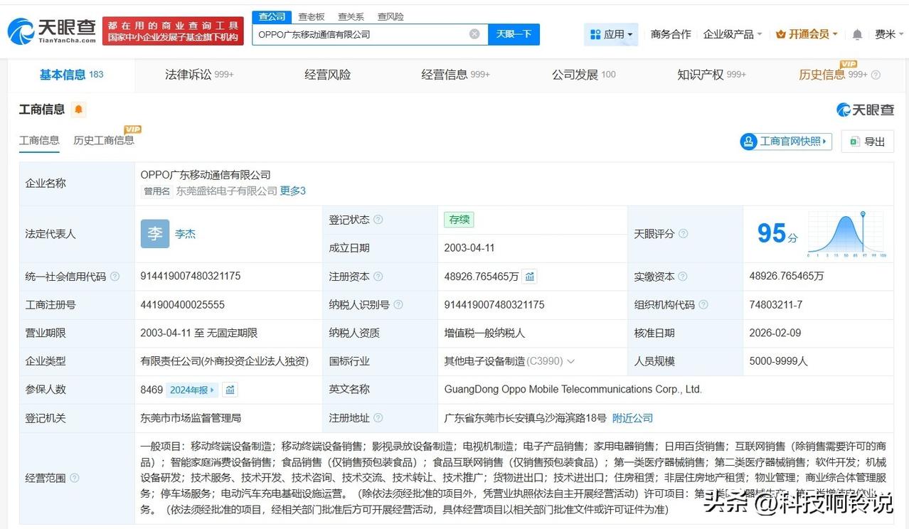 【OPPO发生高管变更 李杰接任OPPO法定代表人】 天眼查App显示,近日,OPPO广东移动通信有限公司发生工商变更,段要辉卸任法定代表人、经理、董事,由李杰接任。 OPPO广东移动通信有限公司成立于2003年4月,注册资本约4.9亿人民币,经营范围包括移动终端设备制造、移动终端设备销售、影视录放设备制造、电视机制造等。股东信息显示,该公司由广东欧加控股有限公司全资持股。 天眼查信息:
