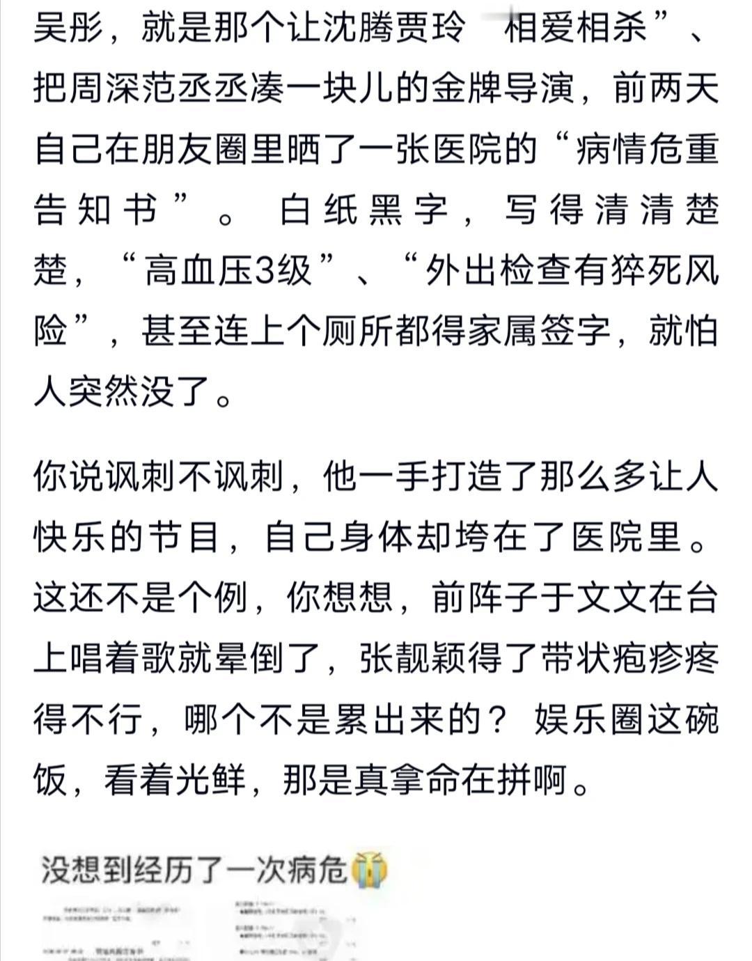 《王牌》导演吴彤晒病危通知,上厕所需签字 娱乐八卦 娱乐八卦分享 人物故事 娱乐八卦故事 名人故事 明星故事 明星娱乐 明星资讯