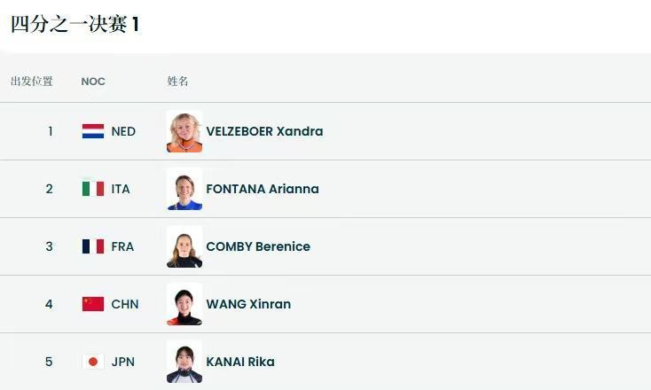 荷兰的桑德拉创造世界纪录!范可新、张楚桐、王欣然均无缘女子500米决赛! 北京时间2026年2月13日消息。今天凌晨,米兰冬奥会短道速滑女子500米,中国队3人出战。其中1/4决赛,王欣然、张楚桐出局。 而在半决赛中,意大利老将方塔纳继续展现很强的经验,晋级决赛。荷兰选手桑德拉,创造了新的世界纪录:41秒399! 范可新在半决赛中,鸣枪后一直处于倒数第一,此后尽可能追赶,还是很遗憾未能晋级。这样,中国队的参赛选手就均无缘女子500米决赛。
