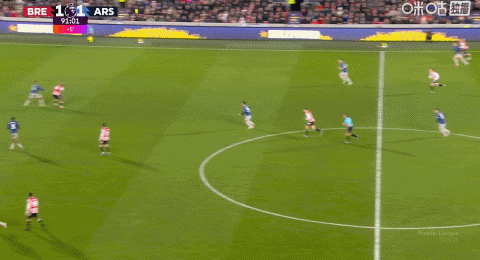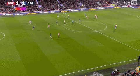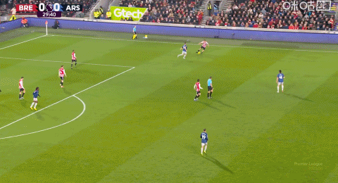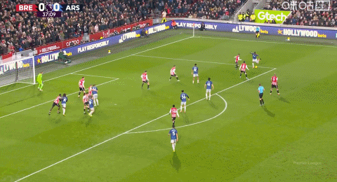 第22分钟,布伦特福德前场右路边线球扔到禁区,连续头球争顶后拉亚得球发起进攻失误被断,布伦特福德传中到禁区,拉亚神扑化解蒂亚戈头球攻门↓
