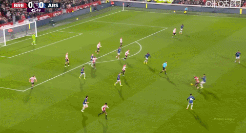 第69分钟,布伦特福德反击机会,禁区内加布里埃尔舍身用头挡出远射↓