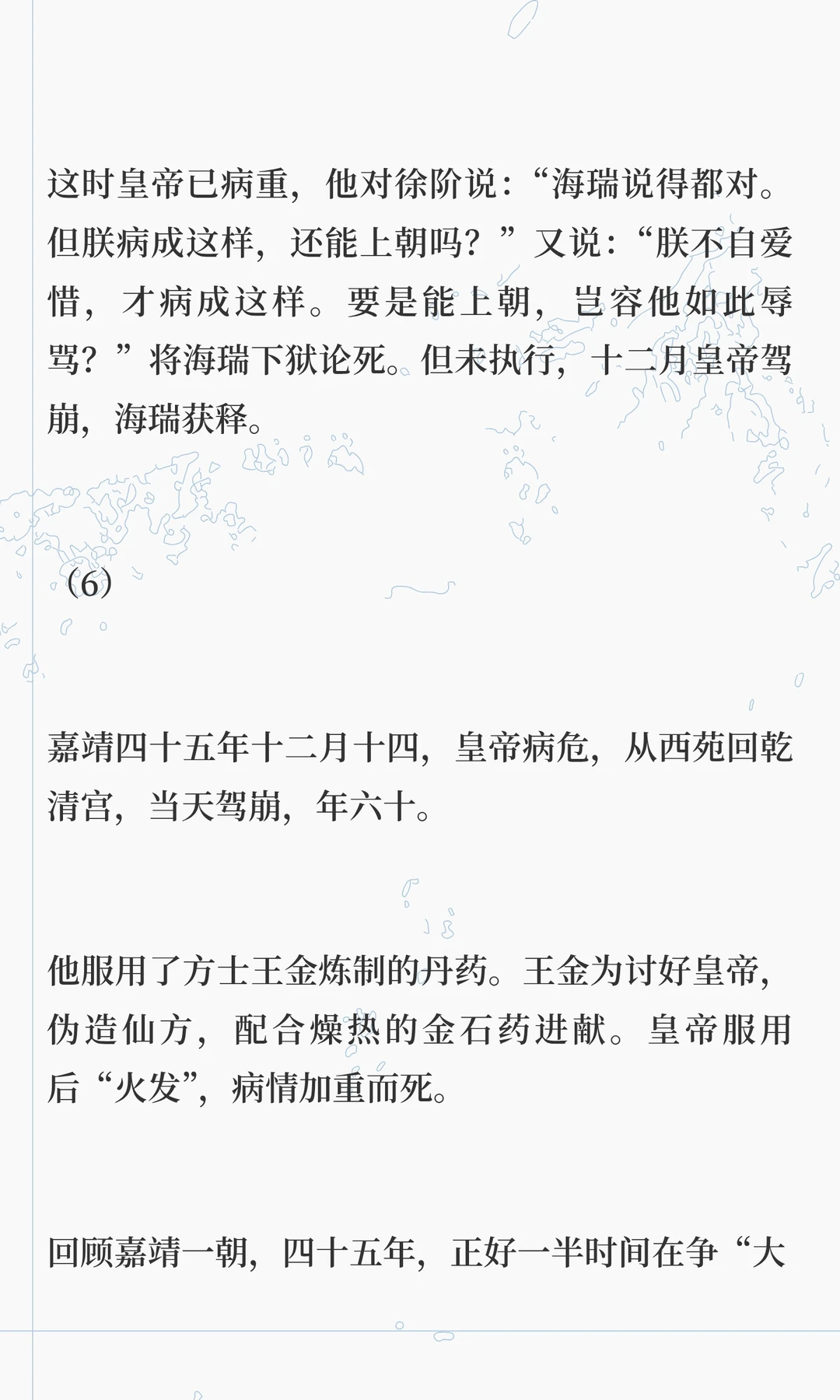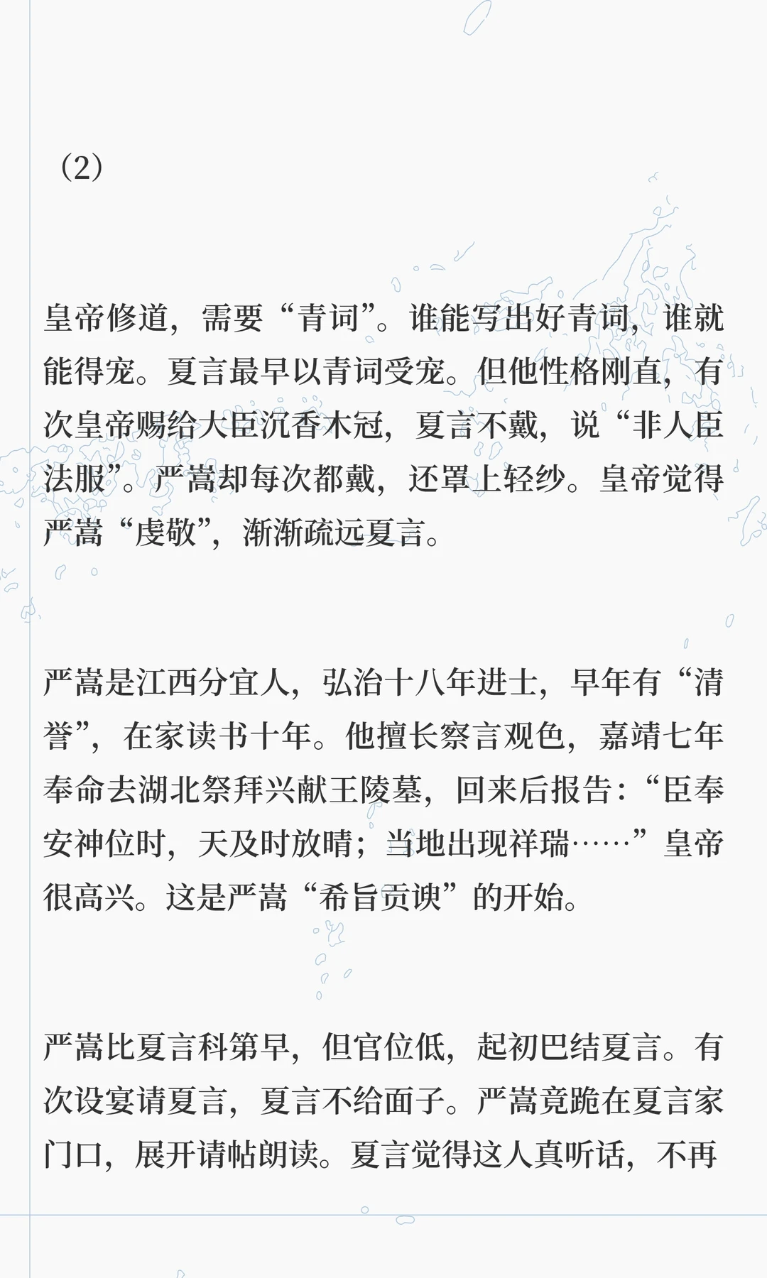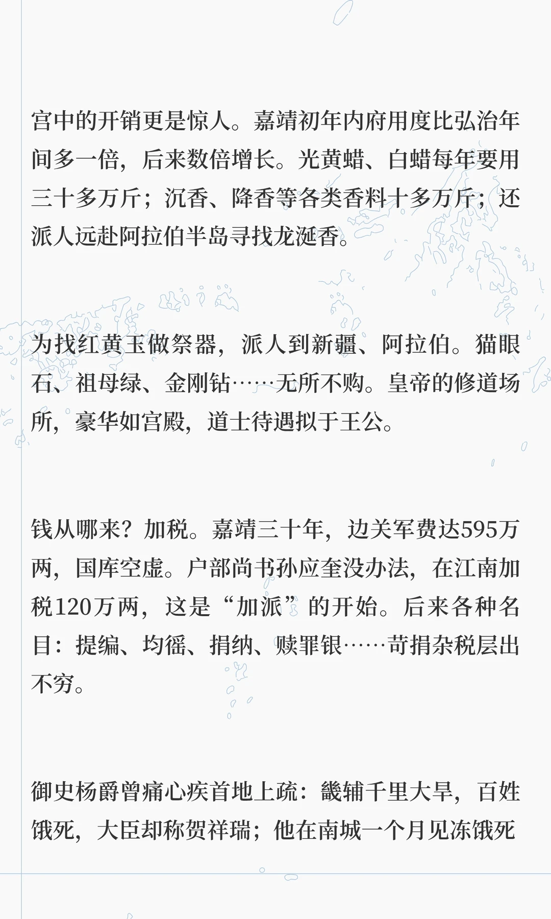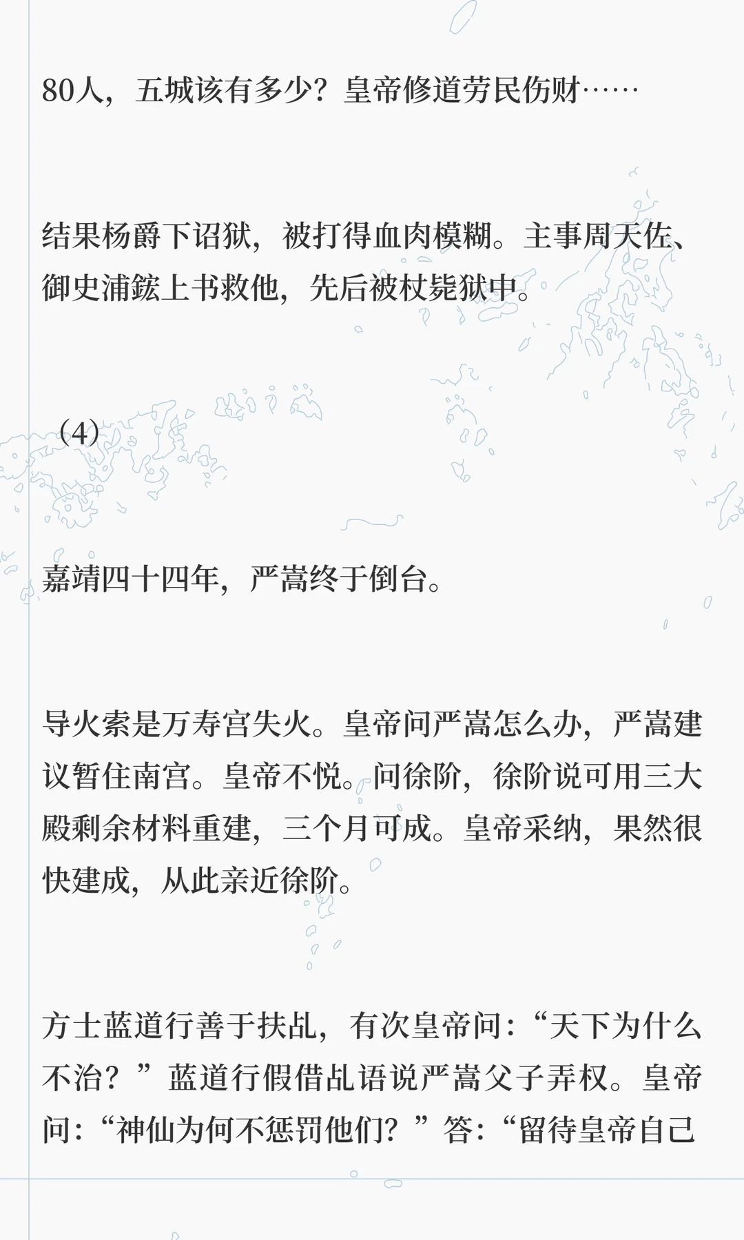 嘉靖帝痴迷道教,修道二十多年,耗尽国库,导致明朝衰败。他通过方士和斋醮寻求长生,却忽视朝政,最终将权力交给严嵩,导致朝纲混乱。
