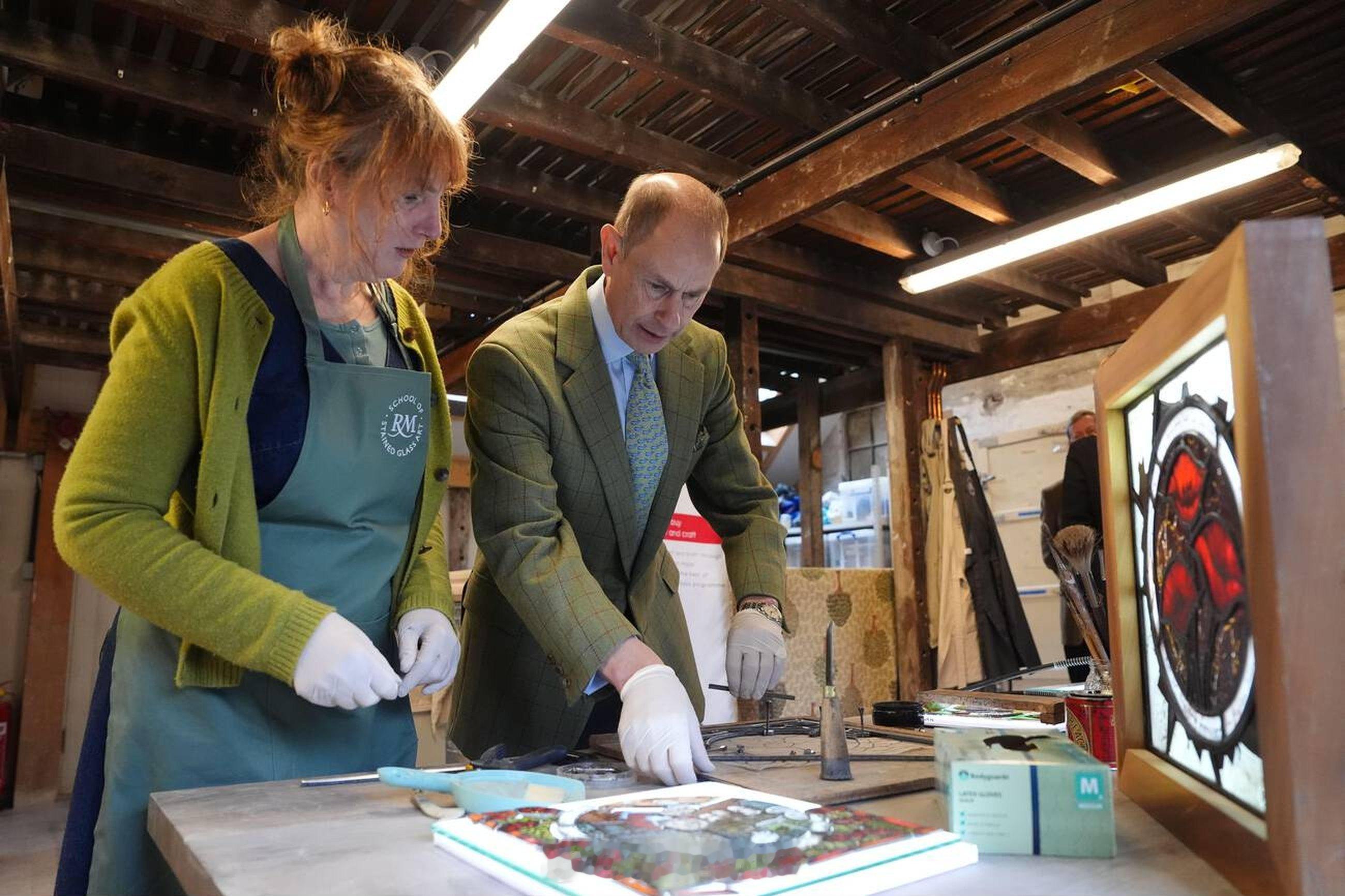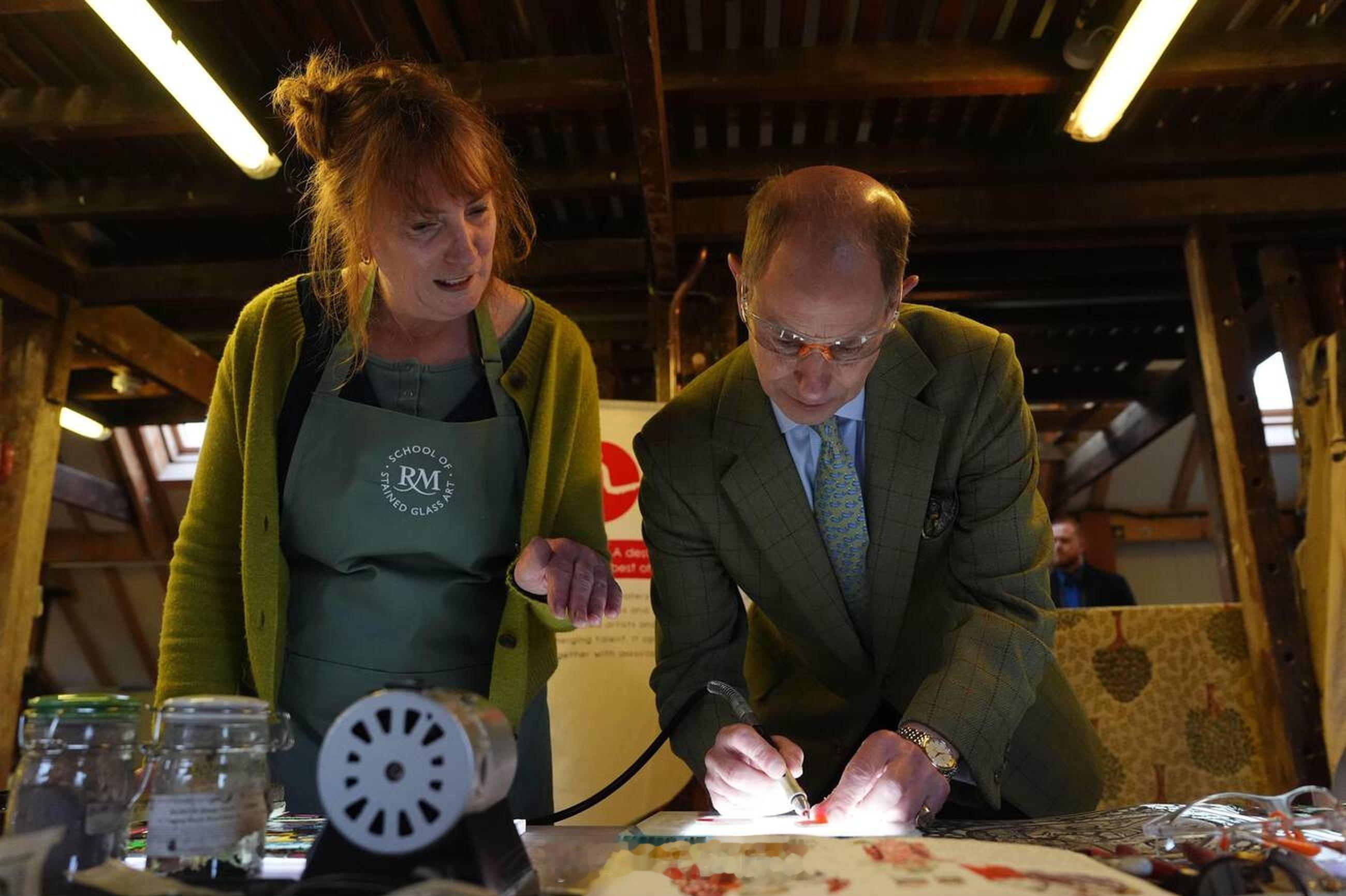 2026年2月12日,爱丁堡公爵爱德华王子在萨里郡访问法纳姆陶器工作室,并尝试制作彩绘玻璃。