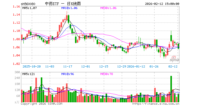 2月12日,中药ETF(560080)跌1.03%,成交额8780.09万元。当日份额减少1500.00万份,最新份额为24.26亿份,近20个交易日份额增加7900.00万份。最新资产净值计算值为25.63亿元。