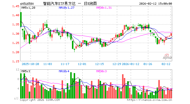 2月12日,智能汽车ETF易方达(516590)涨1.09%,成交额533.09万元。当日份额增加100.00万份,最新份额为6501.50万份,近20个交易日份额增加100.00万份。最新资产净值计算值为8453.90万元。