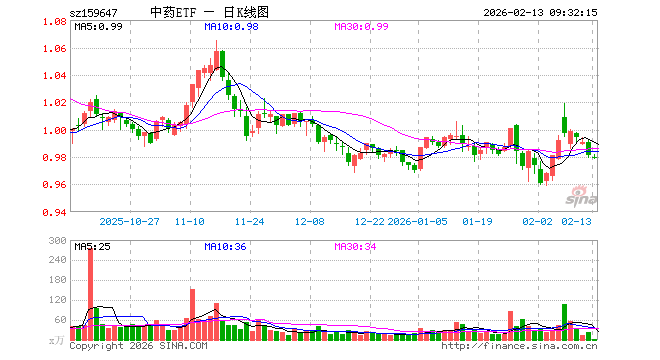 2月13日,中药ETF(159647)开盘跌0.10%,报0.980元。中药ETF(159647)重仓股方面,云南白药开盘涨0.00%,片仔癀涨0.00%,同仁堂涨0.03%,东阿阿胶跌0.02%,华润三九跌0.48%,吉林敖东涨0.05%,白云山跌0.04%,以岭药业涨0.06%,达仁堂涨0.02%,众生药业跌0.21%。