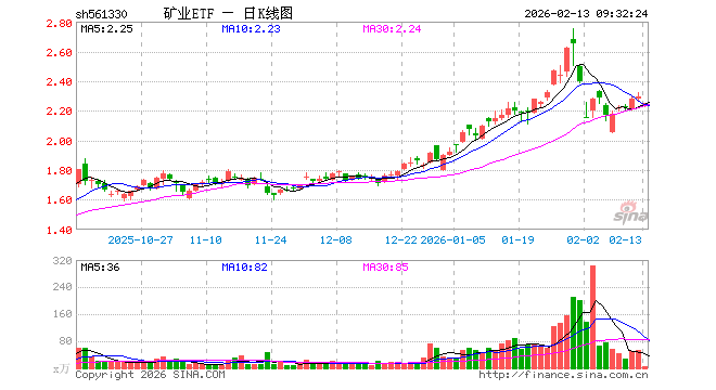 2月13日,矿业ETF(561330)开盘跌3.01%,报2.227元。矿业ETF(561330)重仓股方面,紫金矿业开盘跌3.75%,洛阳钼业跌2.85%,北方稀土跌0.70%,华友钴业跌3.42%,中国铝业跌1.82%,赣锋锂业跌2.72%,山东黄金跌2.71%,云铝股份跌1.34%,中金黄金跌2.03%,天齐锂业跌1.23%。