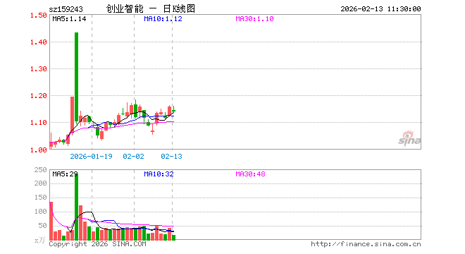 2月13日,截止午间收盘,创业板人工智能ETF招商(159243)跌1.55%,报1.140元,成交额1942.07万元。创业板人工智能ETF招商(159243)重仓股方面,中际旭创截止午盘跌0.51%,新易盛跌0.48%,天孚通信跌4.92%,同花顺跌0.04%,润和软件跌0.06%,北京君正跌0.60%,昆仑万维跌2.46%,蓝色光标跌2.98%,长芯博创跌9.19%。