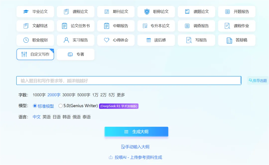 无论你是写课程论文、毕业论文、期刊论文、职称论文、课题论文,还是开题报告、文献综述,它都能轻松应对。甚至连AI写书、AI写教材、AI写专著这种超大型项目都没问题。