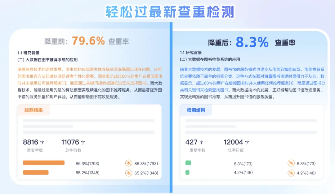 该功能采用语义重组算法,对论文内容进行深度解析和重构,能够在降低重复率的同时,严格保持论文的专业性和学术水准,避免为了降重而牺牲内容质量。