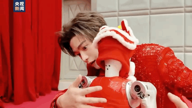 丁禹兮春晚后台和机器人贴贴 对机器人都这么温柔软萌,互动也太有爱了!期待今年小丁的春晚舞台啦~
