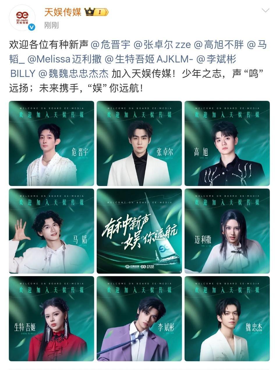天娱签了声鸣远扬8强 天娱这波操作直接拉满!声鸣远扬8强全员签约,实力集结,新篇开启!从舞台到荧幕,期待他们解锁更多可能,闪耀不停!