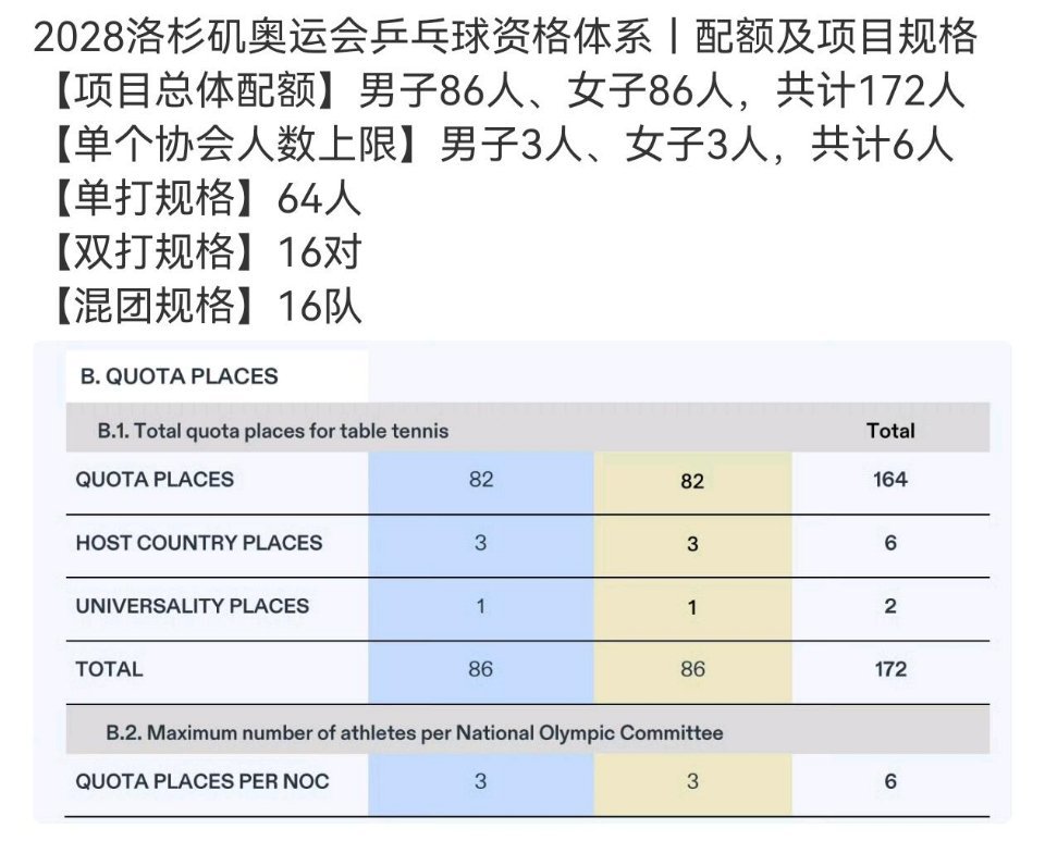 洛奥乒乓球配额及项目规格出炉洛奥乒乓球配额与项目规格正式出炉,新增混合团体共设六