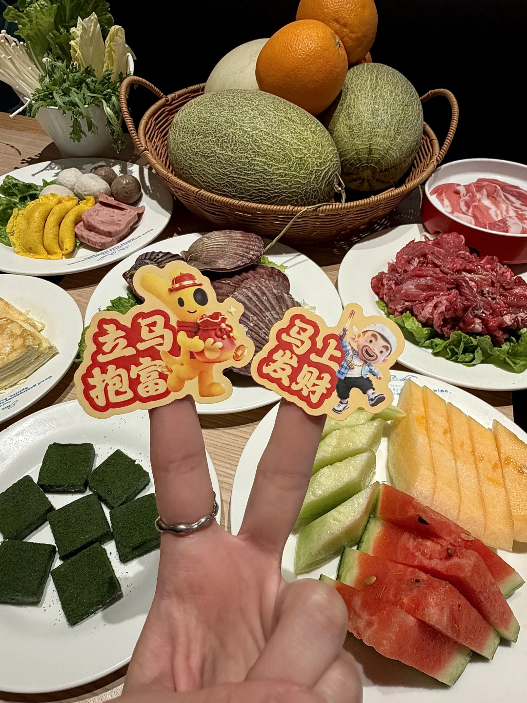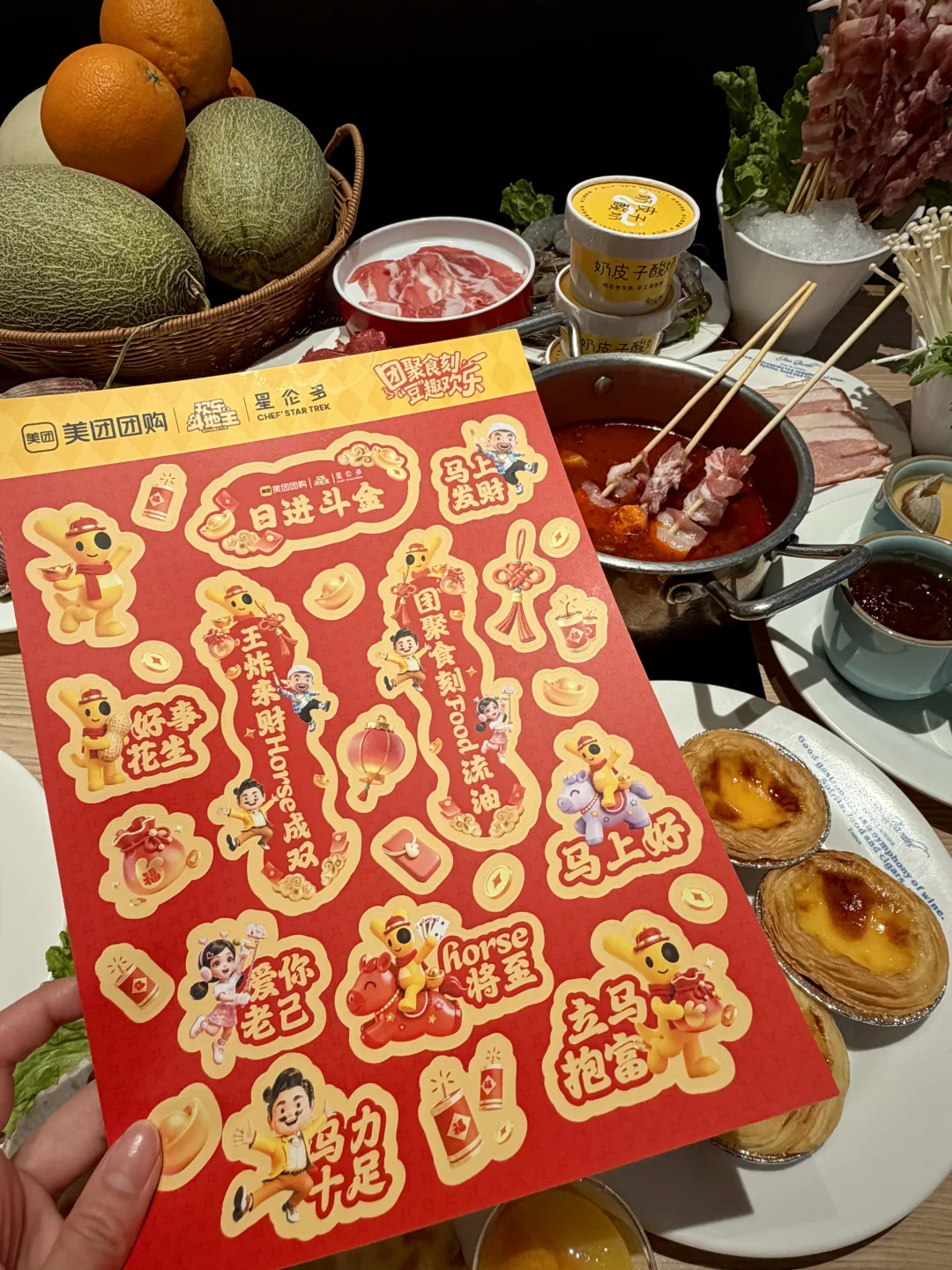 吃到扶墙出,应该是回本了😂 - ✔️涮肉、烤肉 主打涮烤一体!各种三文鱼、生蚝、大虾🦐、北极贝、牛肉……海鲜脑袋狂喜!肉食者星人大满足!!! ✔️烧烤 烤鸭、牛排、烤羊腿……闻着就一整个香迷糊了🤤 ✔️甜品 甜品脑袋尊嘟会沦陷!水果、布丁🍮、蛋糕……饭后再炫两个冰淇淋球🍨很难不吃回本吧🥹 - 美团团购团套餐还能得新春好运福礼贴纸,还能抽黄金!这福气我先接了! 外婆家、豪德亨、新发现也都有参与哦[派对R][派对R][派对R]