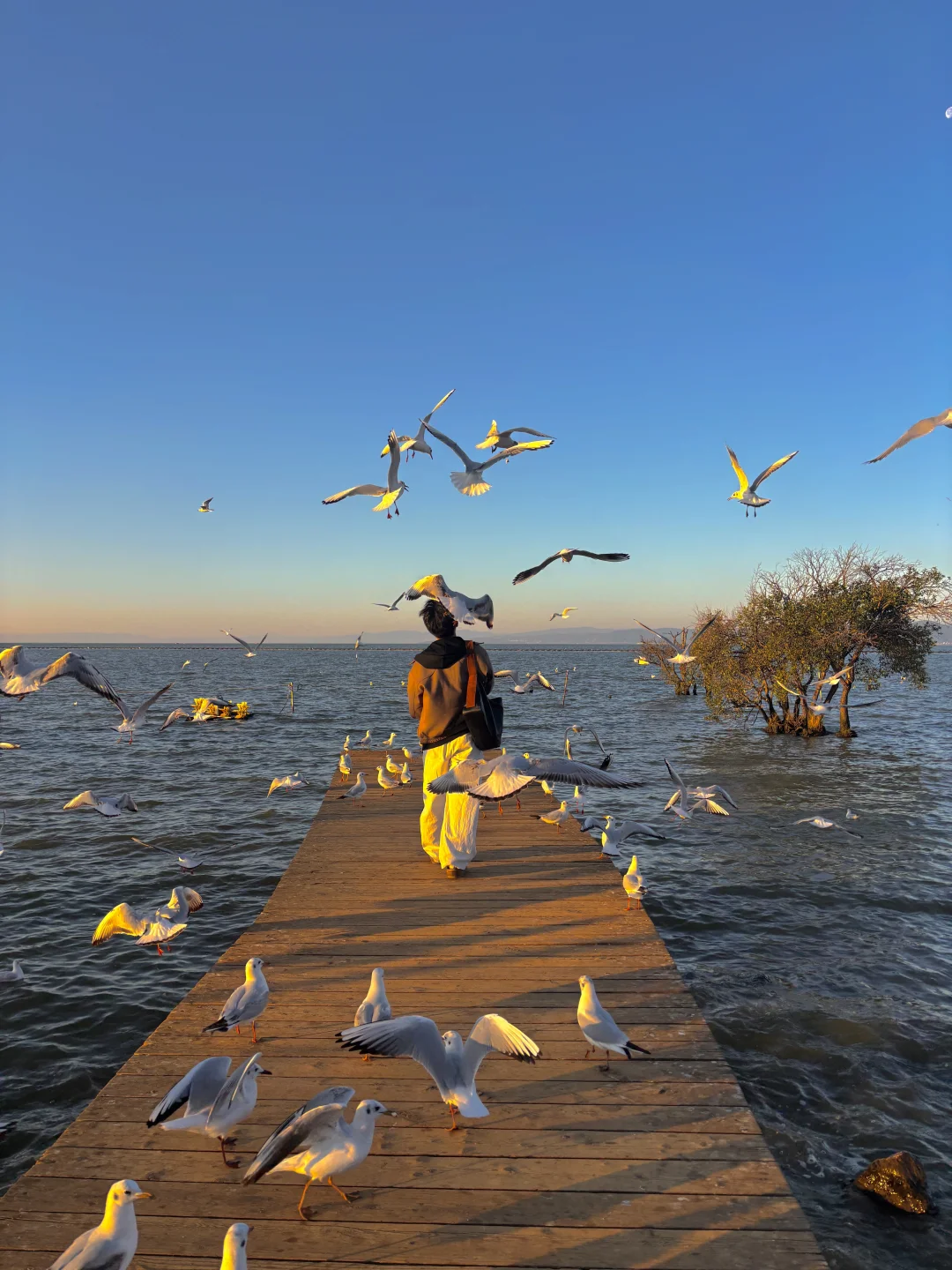 要去王官野湿地公园,日出跟日落都有很多海鸥,而且人都少,我两个时间段都去了,更推荐日出。白天不建议来,水浑浊不好看。白天去海洪湿地,人少点,日落都没落脚的地方。